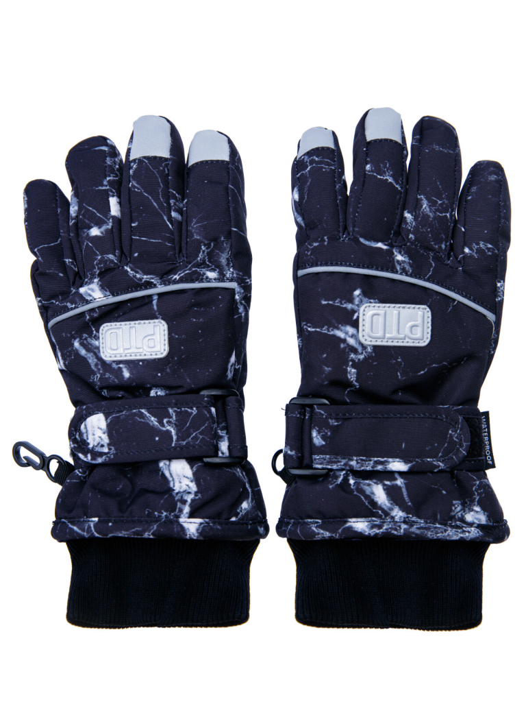 Зимние перчатки с мембраной. Утеплитель - синтепон. Мягкая ладошка из влагостойкого полиуретана. Регулируемая застёжка с липучкой по запястью. Застежка для скрепления пары между собой. Эластичный манжет. Светоотражающие элементы.