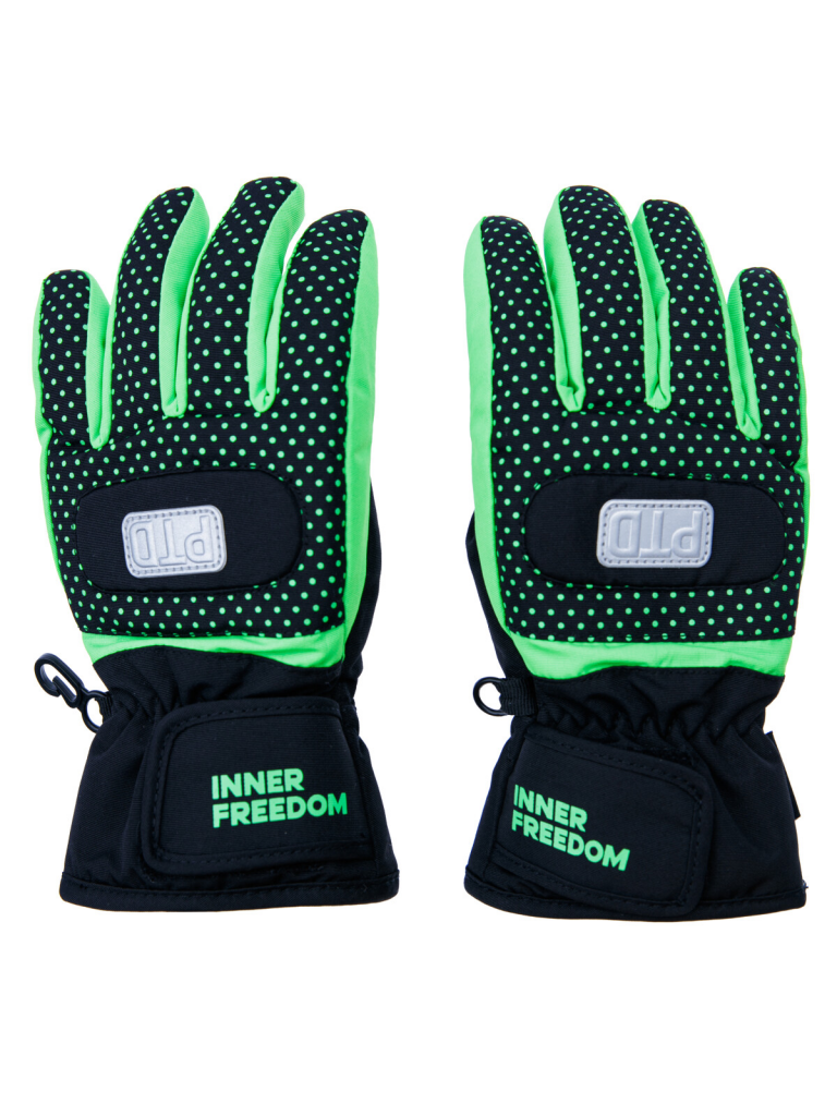 Зимние перчатки с мембраной. Утеплитель - синтепон. Мягкая ладошка из влагостойкого полиуретана. Регулируемая застёжка с липучкой по запястью. Застежка для скрепления пары между собой. Светоотражающие элементы.