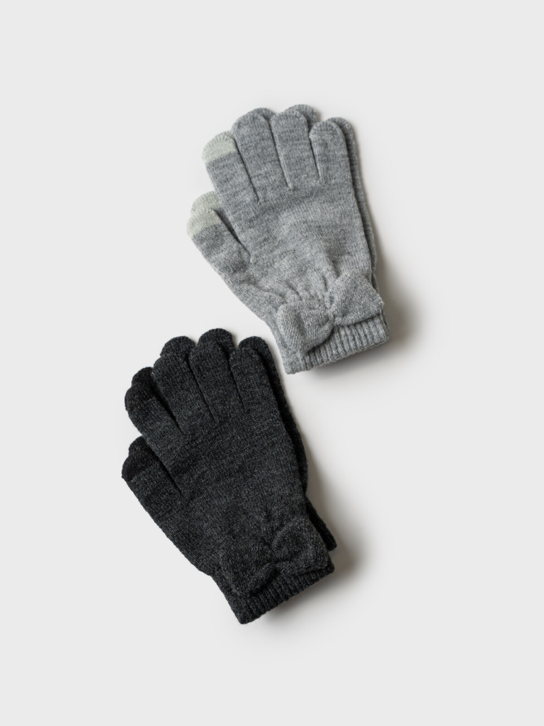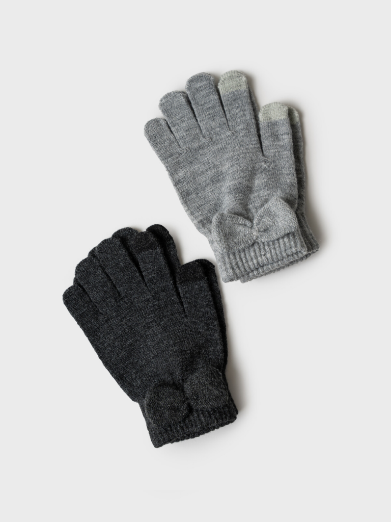Перчатки трикотажные для девочек, 2 пары в комплекте черный,серый