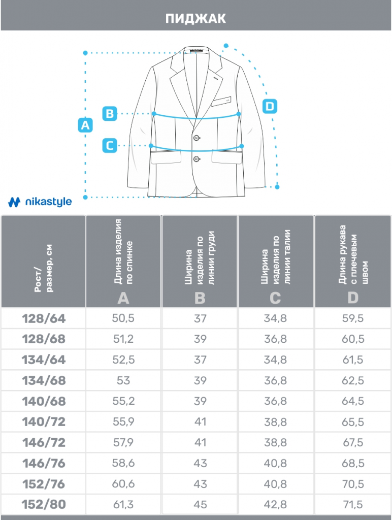 Пиджаки представлены в каждом росте двумя размерами.