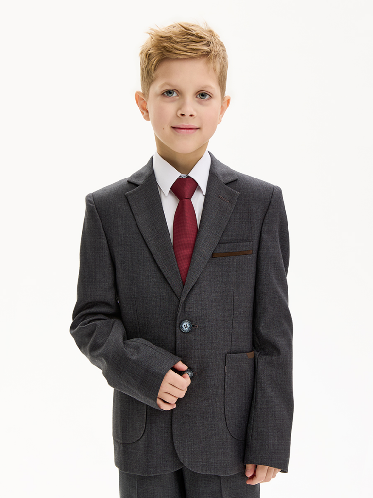 Мы все продумали до мелочей поэтому застежка на две пуговицы и шлица сзади делают пиджак более удобным в использовании. Пиджак можно носить самостоятельно или собрать костюм тройку из нашей школьной коллекции, дополнив образ брюками и жилетом. Такой комплект будет идеальным выбором для школьной формы или на торжественное мероприятие.