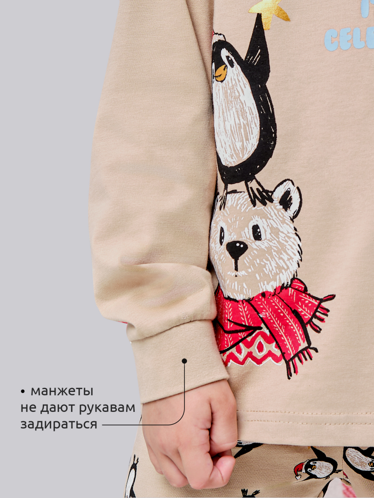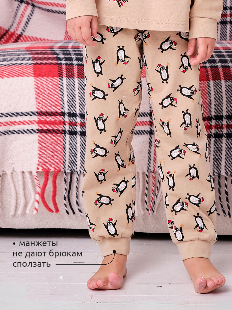 Красивая и уютная пижама для девочки. Пижама для девочки со штанами выполнена из 100% хлопка — идеально для детской одежды! Пижама для девочки продростка приятна на ощупь, прекрасно пропускает воздух, позволяя коже ребёнка дышать. При этом в пижаме из хлопка ребёнку будет комфортно, даже если он сбросит одеяло во сне. Всё это обеспечивает комфортный и качественный сон. Джемпер и брюки среднего объёма, плечо немного спущено, рукава широкие и свободные — в пижаме очень удобно спать, играть. Широкая и мягкая резинка в поясе не перекручивается и не давит. Манжеты и отделка горловины из эластичной рибаны — они не растягиваются, ребёнку удобно надевать и снимать пижаму. Перевод принта: "Зима-это не созон, это прзднование". Пижама для девочки новогодняя подходит для сна как дома, так и в детском саду — прекрасный выбор для вашего ребёнка! Новогодняя пижама для малыша станет замечательным подарком, который способен вызвать искреннюю радость у вшей дочки, внучки, сестренки, племянницы, оставив незабываемые воспоминания о любом празднике и принося массу удовольствия каждый день.