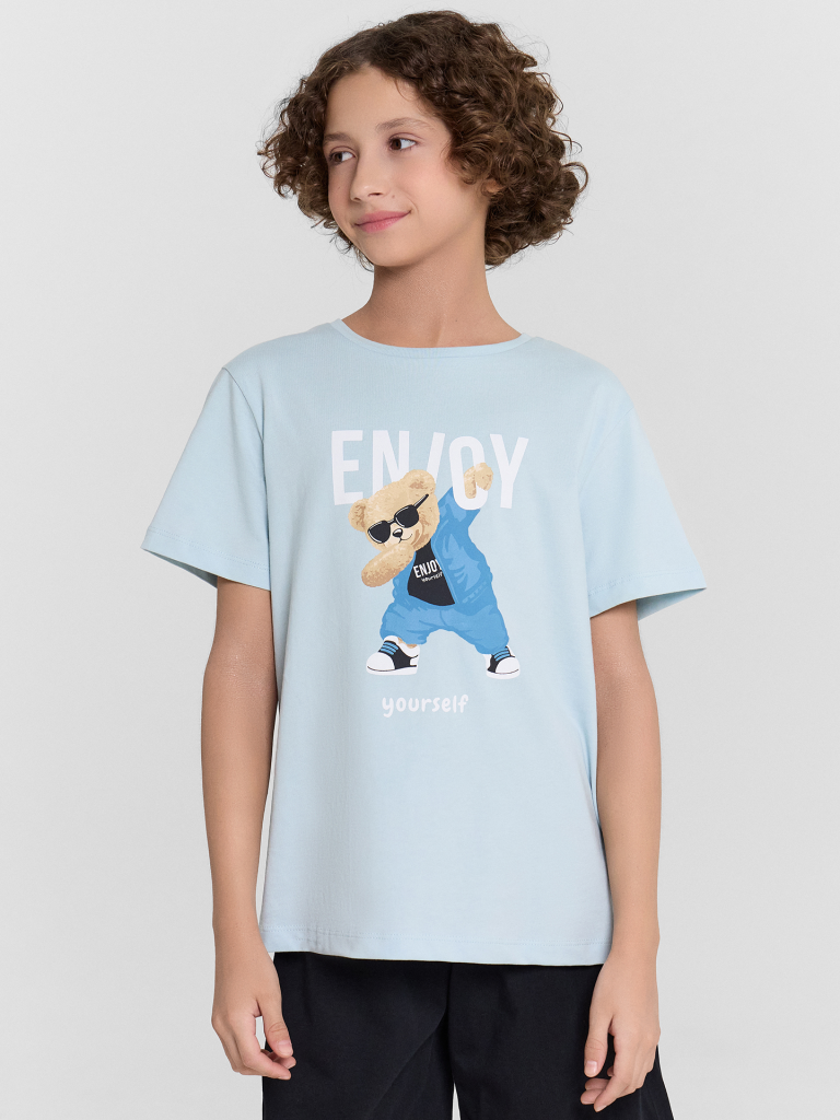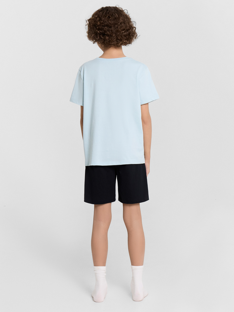Пижама для мальчиков - это отличный комплект для сна и отдыха. Футболка имеет круглую горловину и короткие рукава, обеспечивающие комфорт и свободу движений. Шорты длиной до колен оснащены эластичной тесьмой в поясе для надежной посадки. Модель выполнена из хлопковой кулирки - натурального материала, который обладает отличной воздухопроницаемостью и мягкостью. Благодаря этим свойствам, такая пижама идеально подходит для сна и отдыха, создавая уют и комфорт в любое время года.