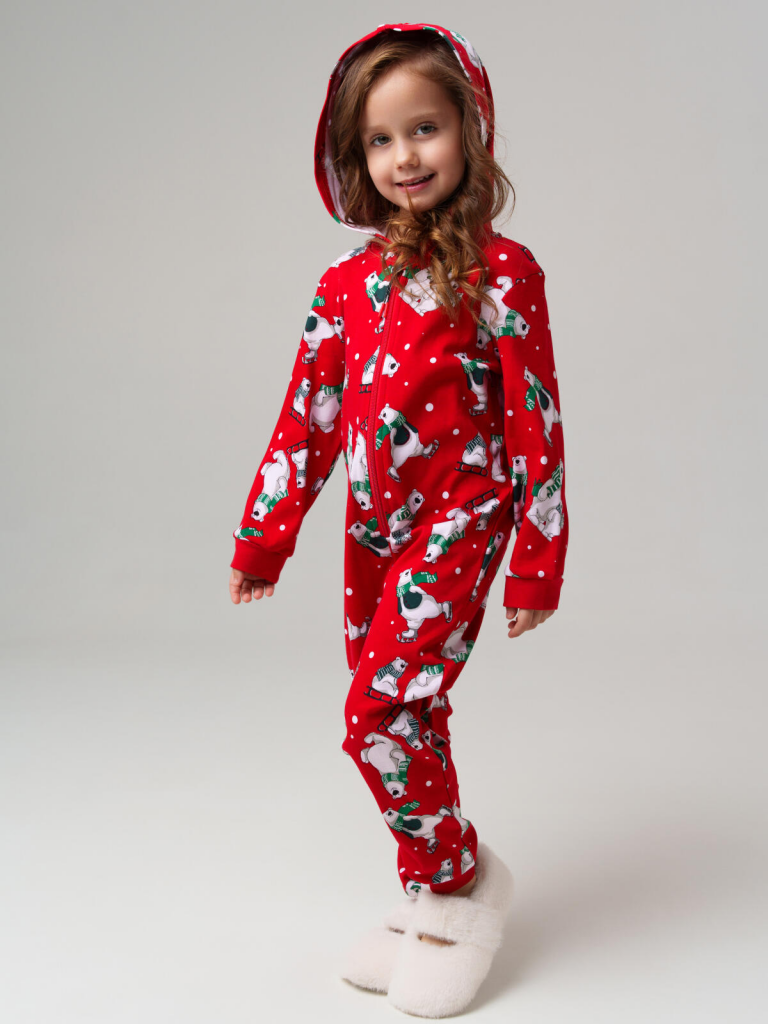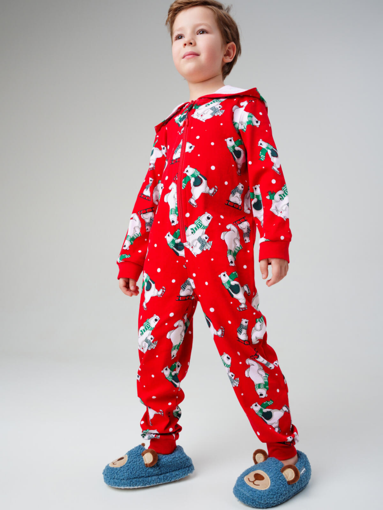 Детский трикотажный комбинезон пижама для мальчиков и девочек от PlayToday — уютный, как домашние объятия, и яркий, как сказка перед сном. В нём ребёнку будет комфортно и дома, и в детском саду, и на ночёвке у друзей.Преимущества модели:+ застёжка на молнию по всей длине — легко и быстро надеть даже на самого активного малыша+ мягкий хлопковый трикотаж — дышащий и безопасный для чувствительной кожи+ эластан в составе — материал тянется и не деформируется после стирки+ манжеты на рукавах и по низу брюк из риба — комфортная посадка и защита от задирания ткани+ удобный капюшон с контрастной подкладкой — дополнительное тепло и стильный акцент+ яркий новогодний принт — создаёт настроение каждый деньКогда и как носить:Комбинезон можно использовать как уютную пижаму для сна, домашний костюм для игр и отдыха или удобный наряд для поездок и праздников в детском саду.Совет по стилю:Сочетайте пижаму-комбинезон с домашними тапочками PlayToday и мягким пледом из коллекции бренда — получится идеальный комплект для холодных вечеров.Размеры: 98, 104, 110, 116, 122 см — подходят детям от 3 до 7 лет.Уютная трикотажная пижама-комбинезон с капюшоном от PlayToday — лучшее решение для сна, игр и отдыха дома.