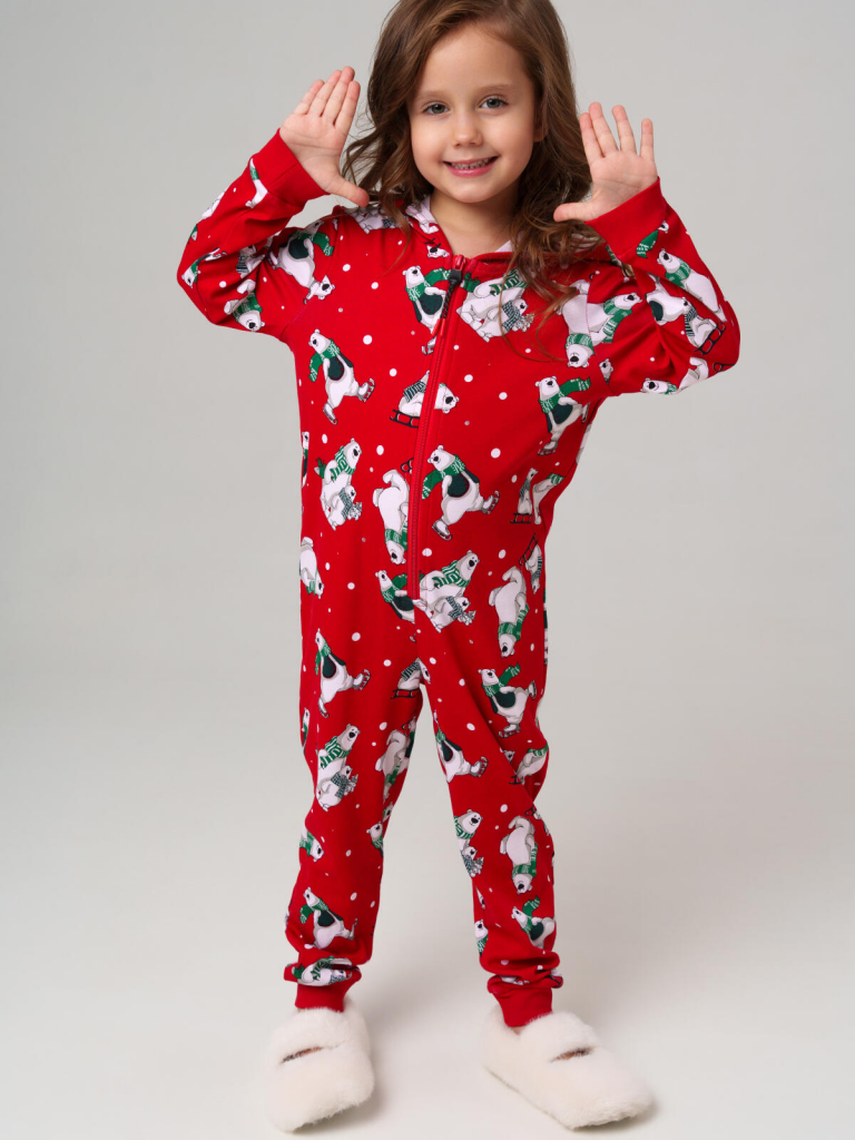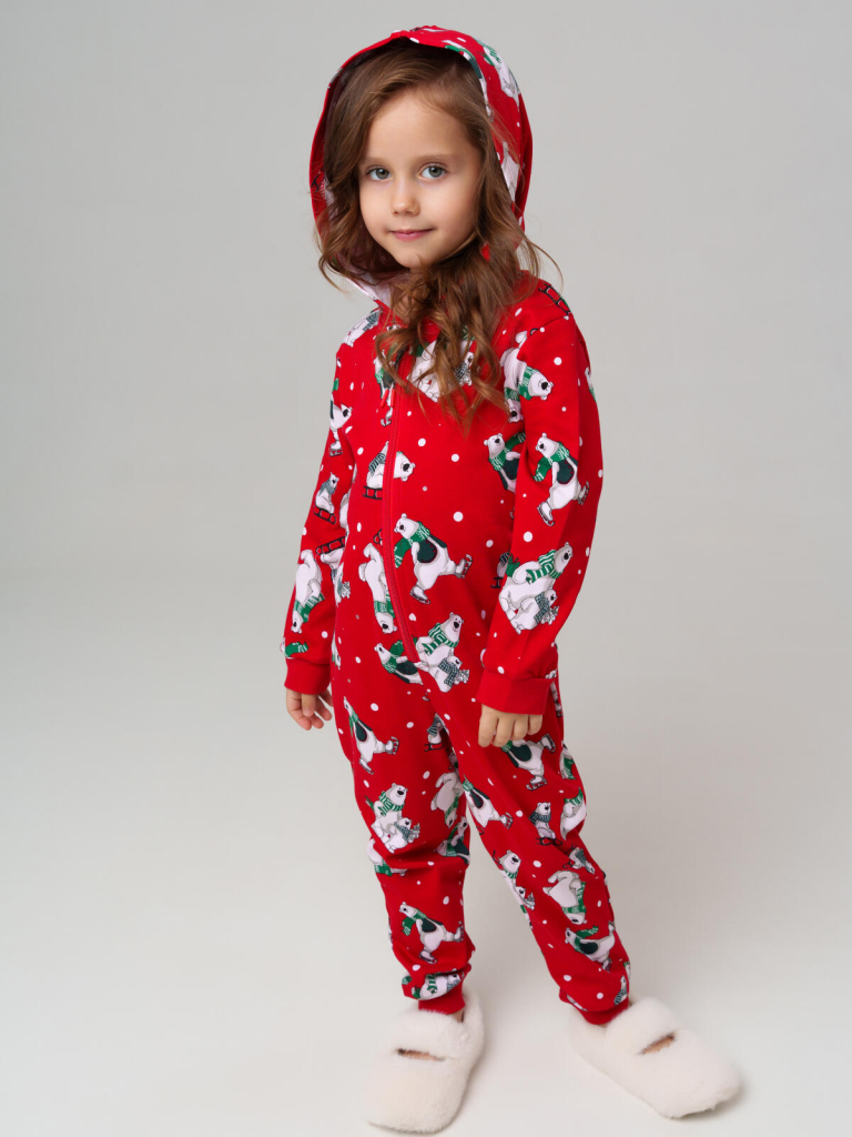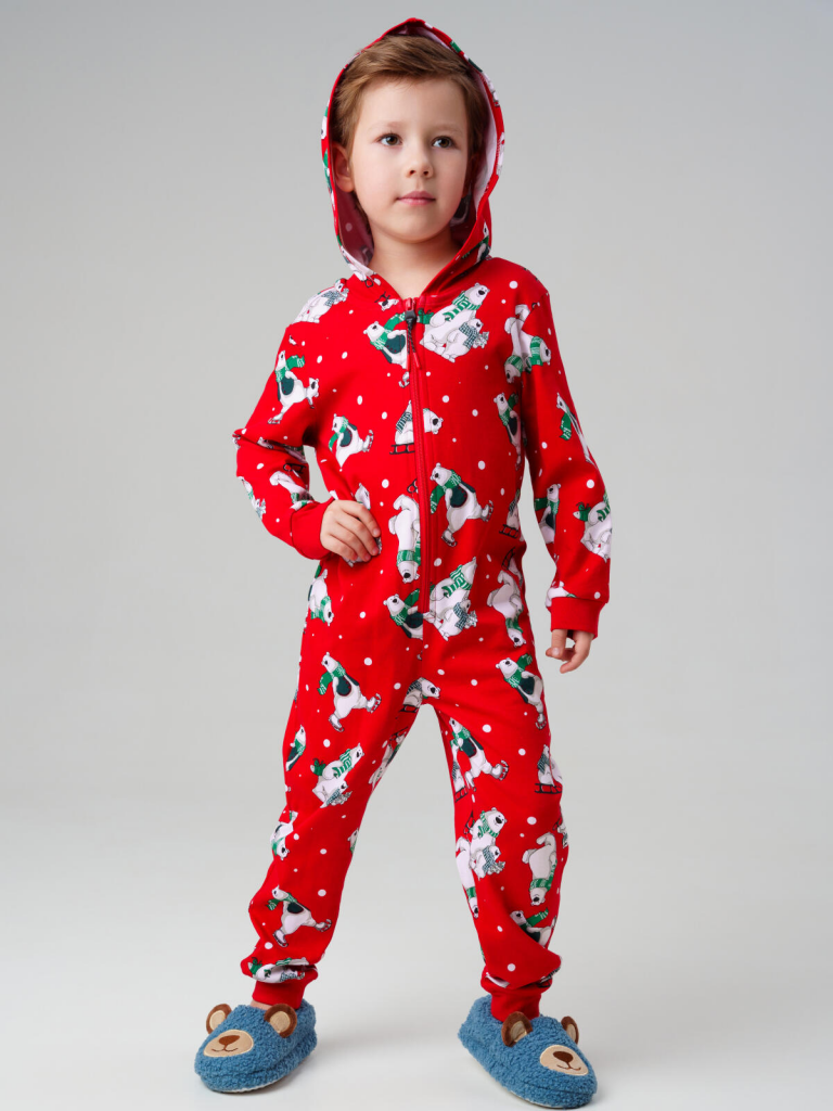 > Пижама-комбинезон трикотажная унисекс для детей красный