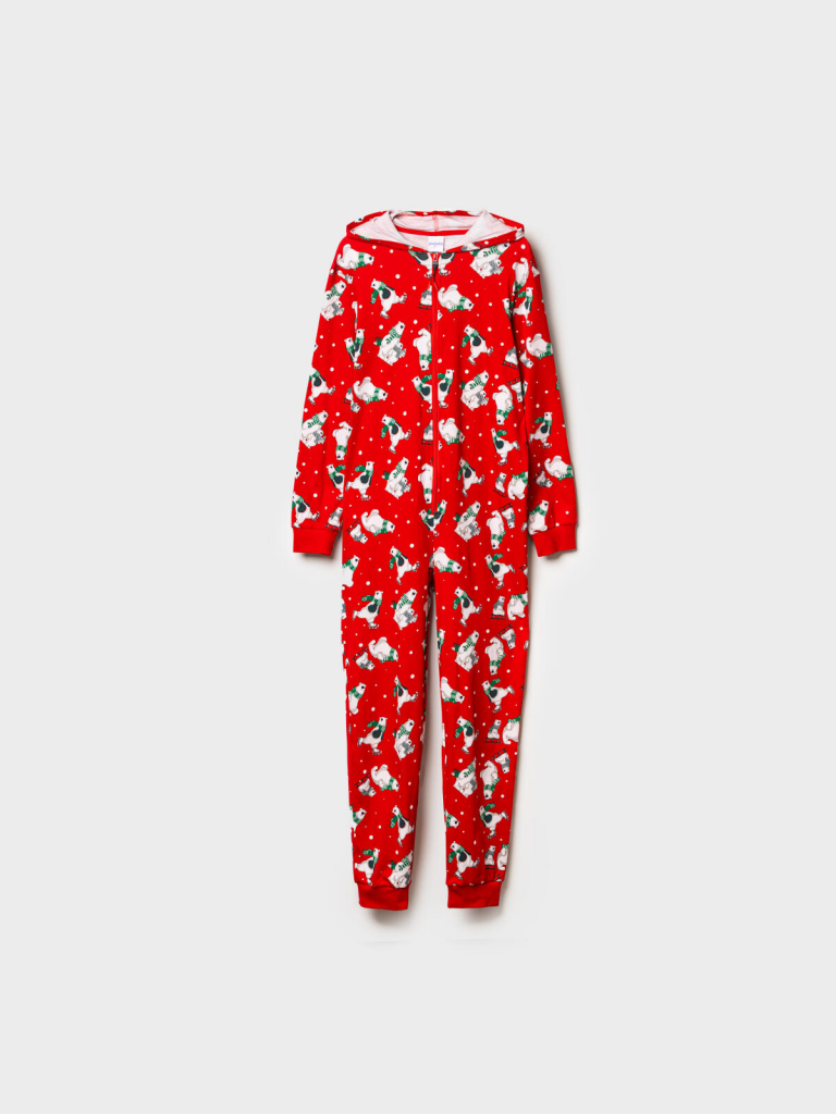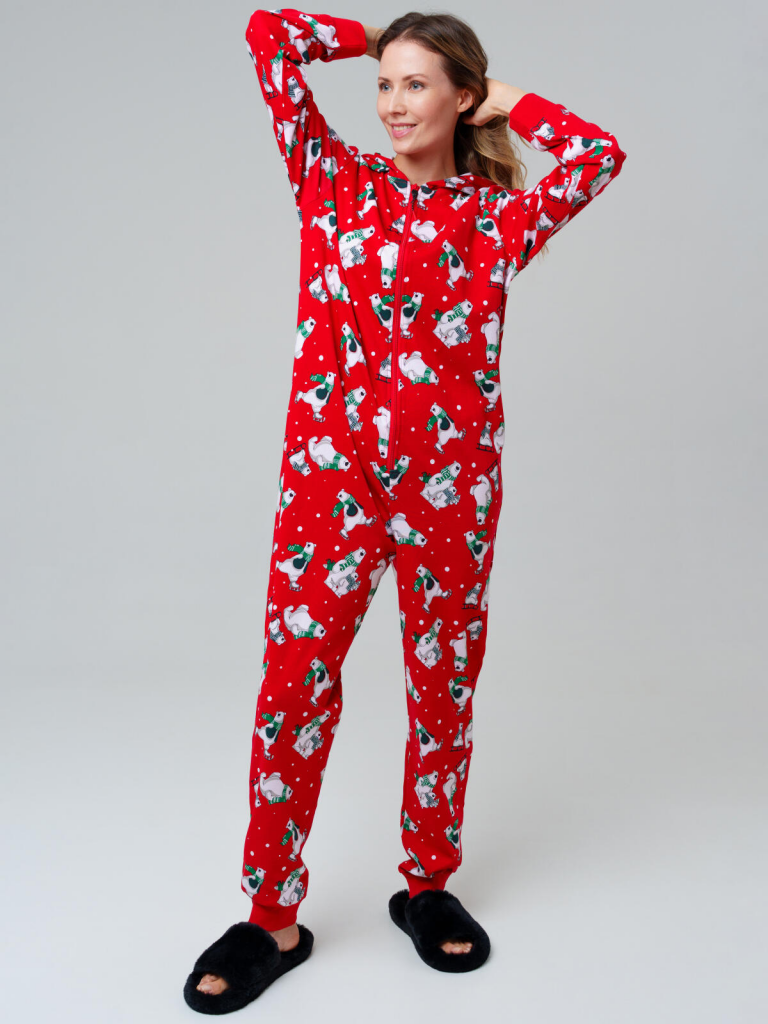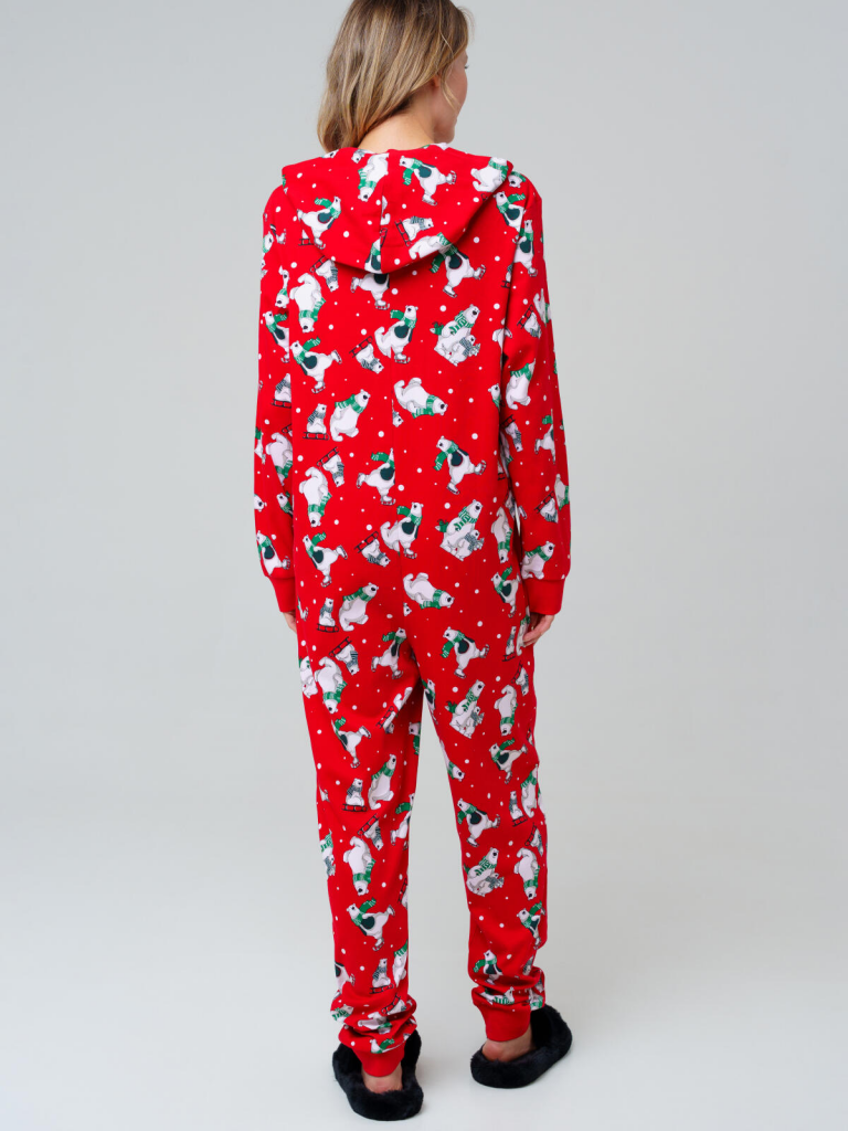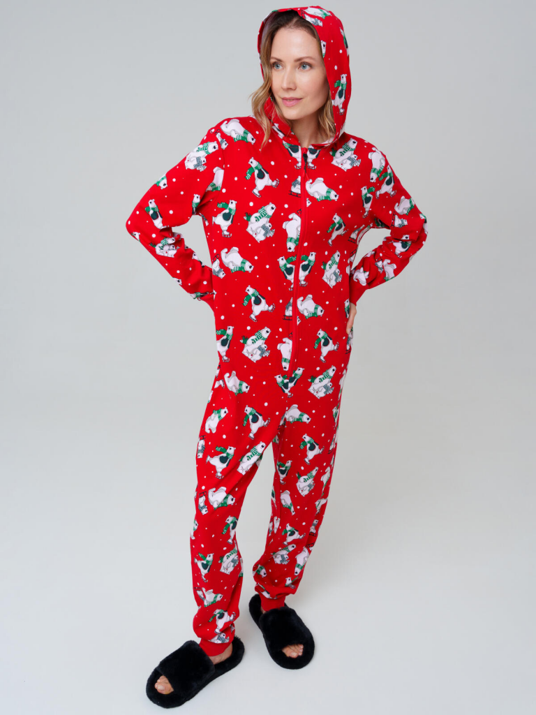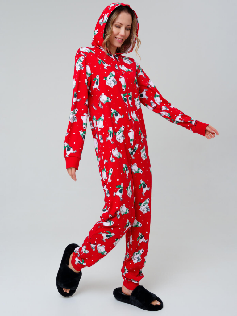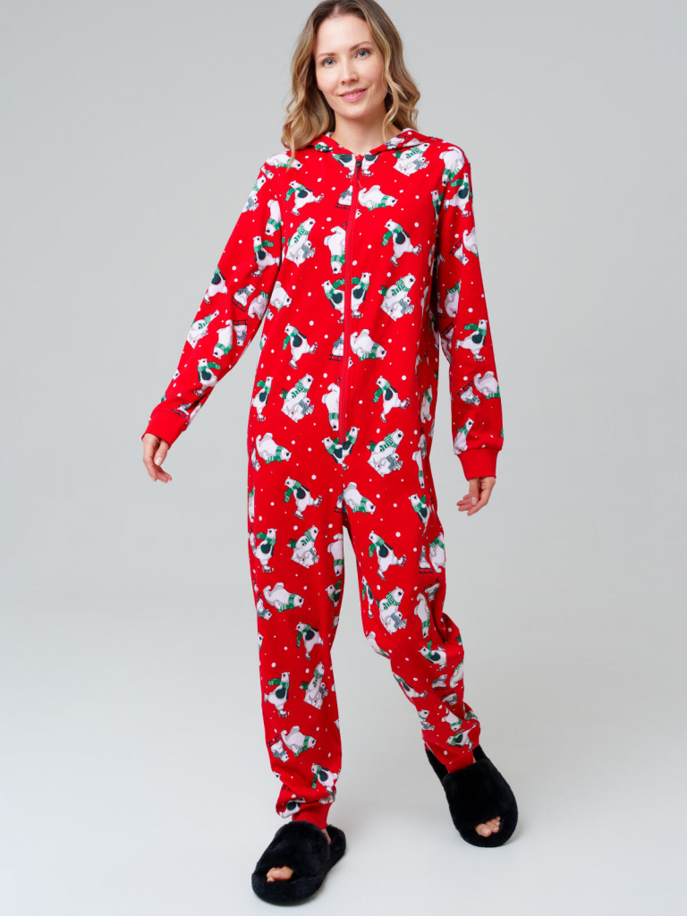 > Пижама-комбинезон трикотажная унисекс для взрослых красный