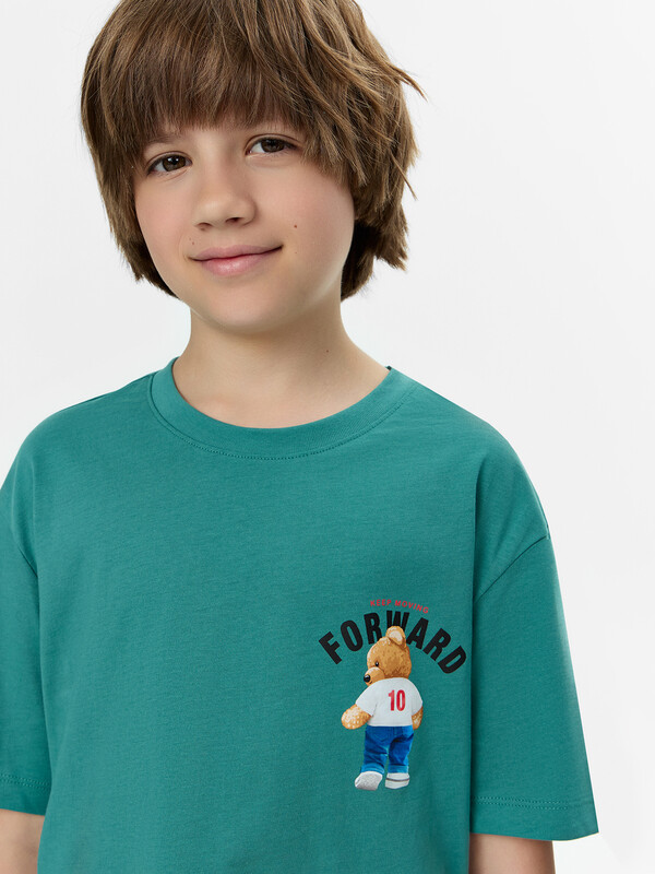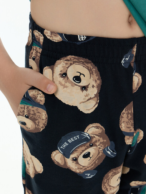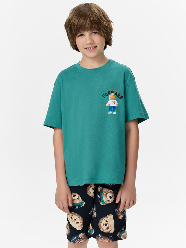 Этот домашний комплект для мальчиков — удобный и практичный выбор для отдыха и сна. Футболка свободного силуэта обеспечивает комфортную посадку. Круглая горловина с обтачкой из рибаны добавляет мягкости и эластичности, обеспечивая удобство при носке. Свободные рукава и слегка спущенная линия плеча создают расслабленный силуэт, а обработка низа рукавов и футболки швом в подгибку делает изделие аккуратным и долговечным. Шорты ниже колена свободного силуэта и с высокой посадкой на талии обеспечивают максимальное удобство, создавая ощущение свободы движений. Эластичный пояс мягко фиксирует изделие, а обработка низа шорт швом в подгибку делает модель надежной и устойчивой к износу. Этот комплект из натурального хлопка идеально подходит для домашних образов, сочетая комфорт, практичность и стиль!