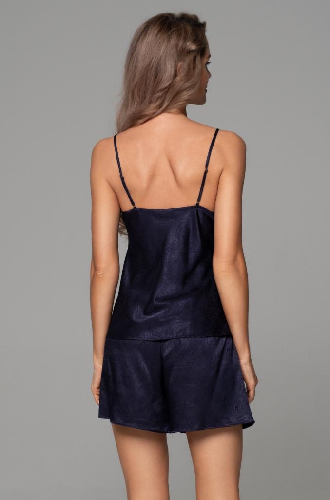 Комплект Mia-Amore состоит из топа на тонких бретелях и шорт. Изделия комплекта выполнены из смесового шелкового жаккардового полотна.