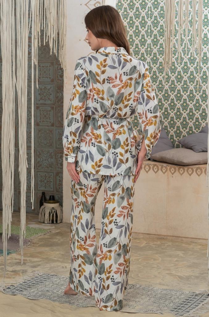 Комплект Mia-Amore состоит из удлиненного жакета на пуговицах, с длинными рукавами и брюк, выполнен из принтованного хлопкового муслина. Брюки на эластичном поясе с боковыми карманами. Пояс в комплект не входит.
