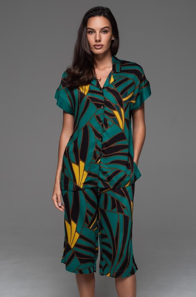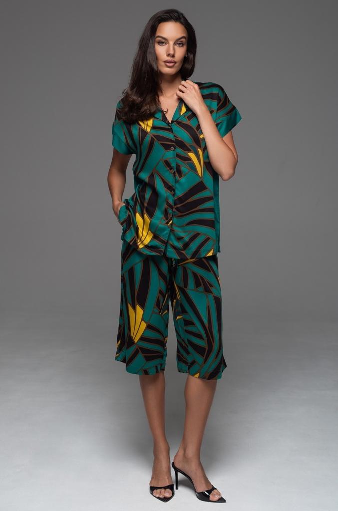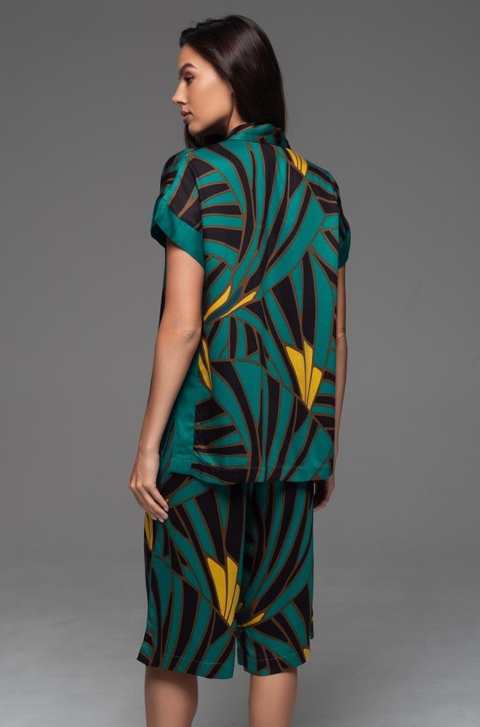Комплект Mia-Amore состоит из рубашки свободного силуэта и удлиненных шорт. Изделия комплекта выполнены из принтованного натурального материала.