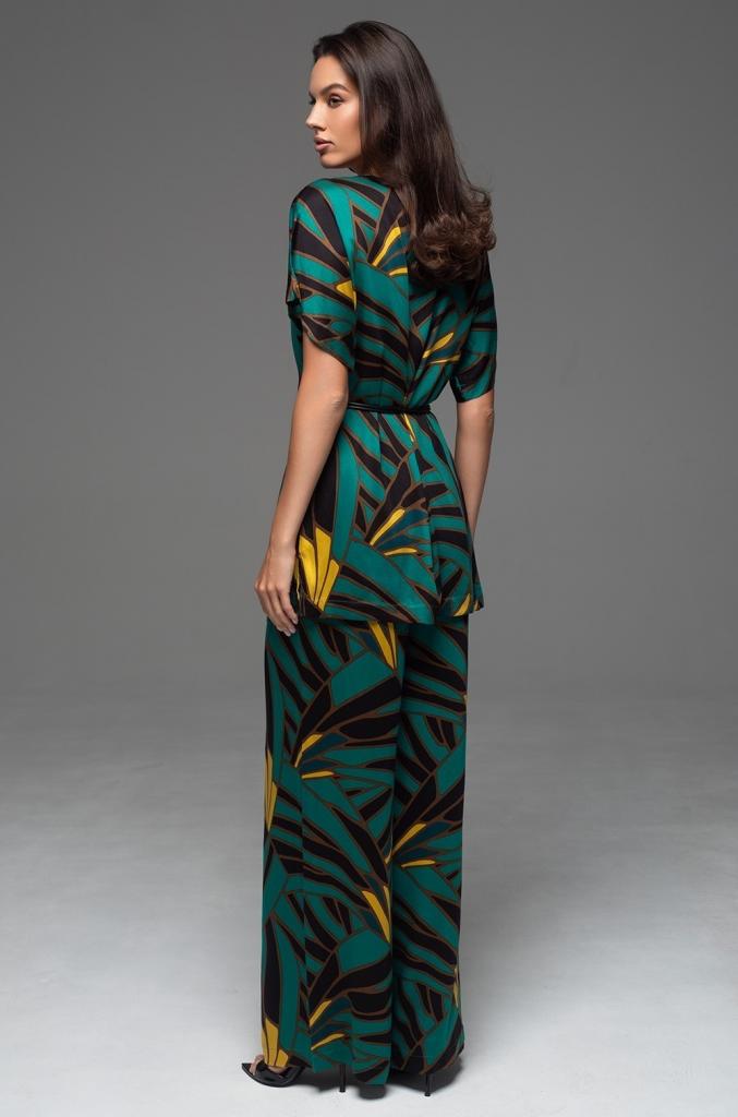 Комплект Mia-Amore состоит из удлиненного топа свободного силуэта с коротким рукавом и широких брюк-палаццо. Изделия комплекта выполнены из принтованного натурального материала. Линию талии можно подчеркнуть за счет стильного узкого пояса с кистями, который идет в комплекте.