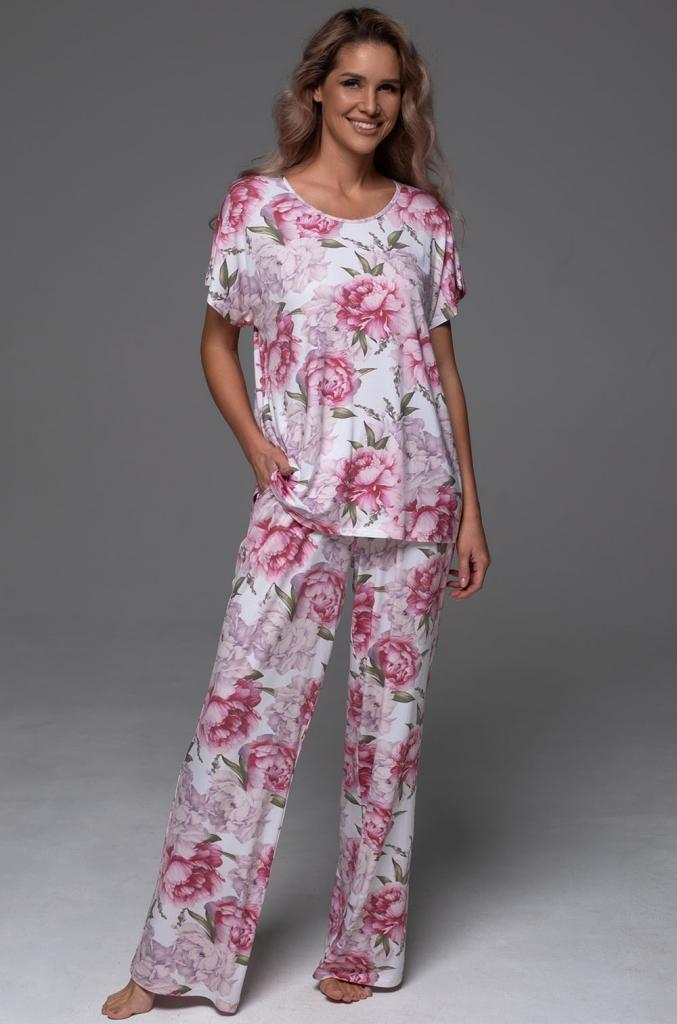 Комплект Mia-Amore состоит из топа с удлинёнными плечами и брюк, выполнен из трикотажного принтованного вискозного полотна. Комфортный топ свободного силуэта с закрытыми плечами и разрезами по бокам. Брюки на эластичном поясе с боковыми кармашками.