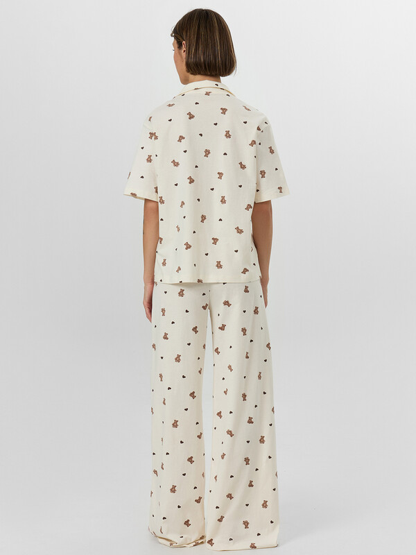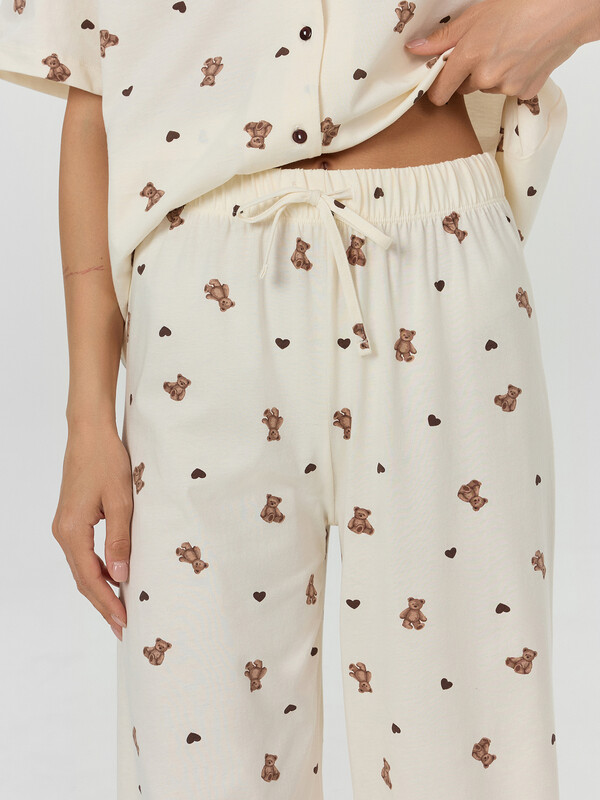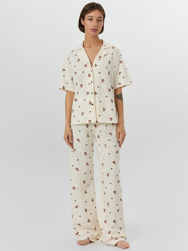 Оба предмета пижамы выполнены из натурального хлопка, который не вызывает раздражения и обеспечивает комфортную температуру тела ночью. Комплект подходит для ежедневного использования — ткань выдерживаетстирки, не теряя мягкости и цвета.