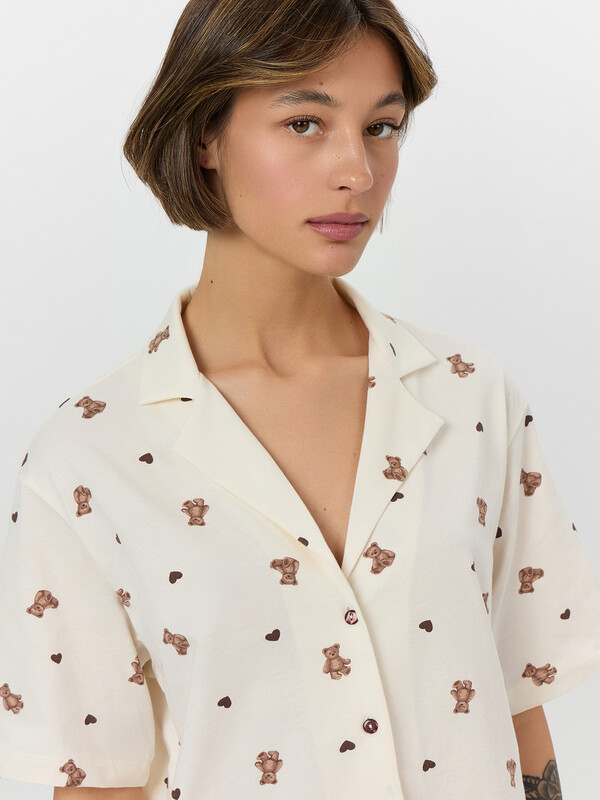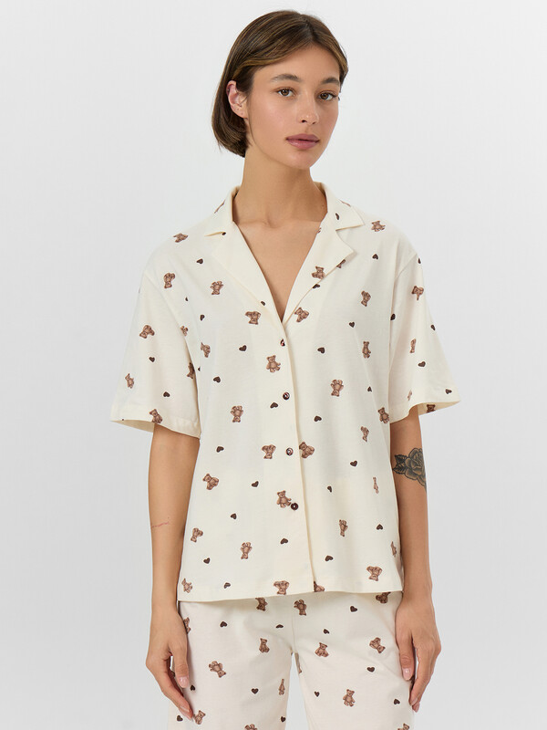 Пижама женская создана для тех, кто ценит комфорт и качество. Рубашка свободного кроя не обтягивает тело, позволяя коже дышать. Отложной воротник мягко обрамляет шею, а короткие рукава не мешают движениям во сне. Застежка на пуговицах удобна в использовании, а аккуратная строчка по низу предотвращает скручивание ткани.