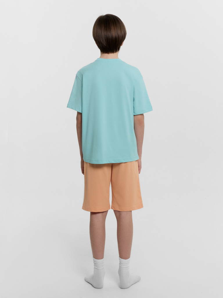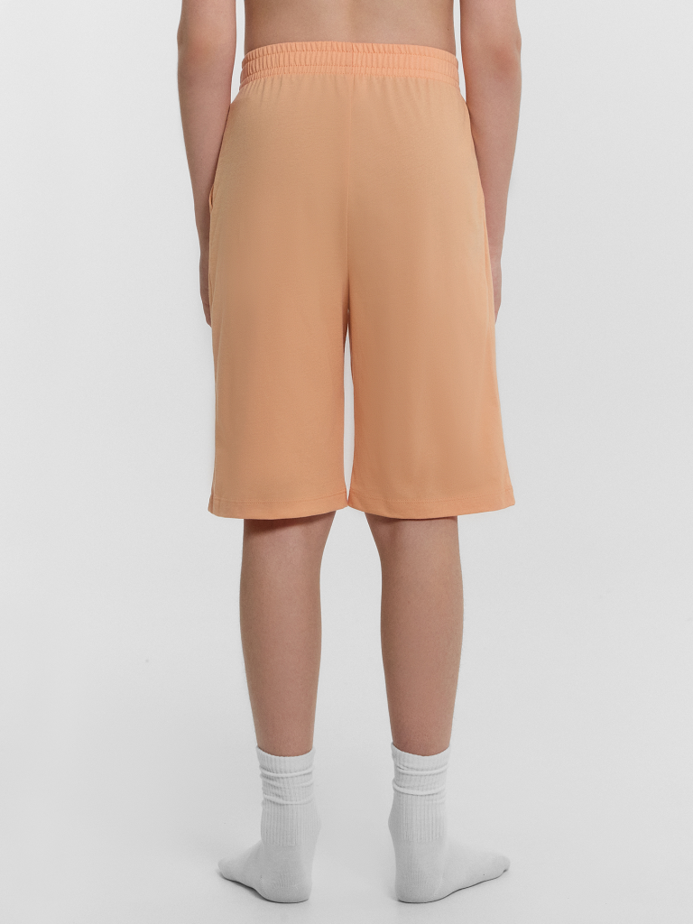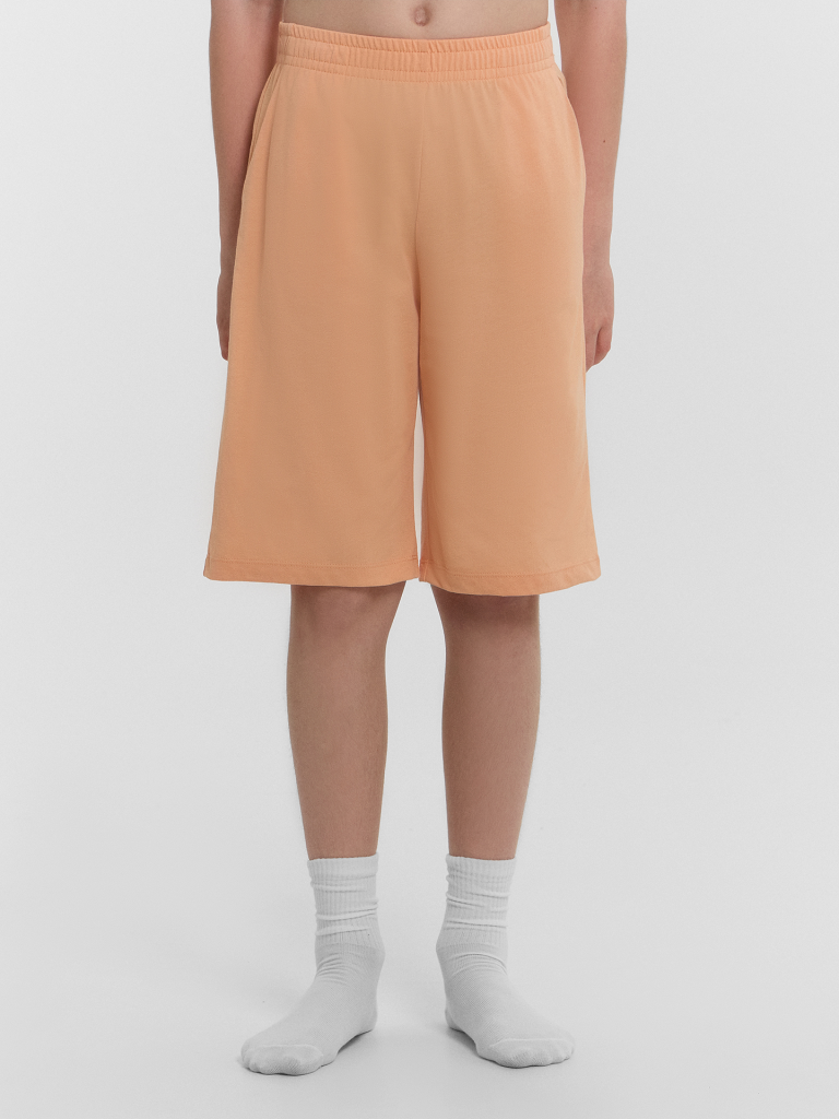 Шорты ниже колена, свободного силуэта с высокой посадкой на талии. Спереди карманы с отрезным бочком. Пояс цельнокроеный внутри с резиной 40RV. Низ шор в подгибку.