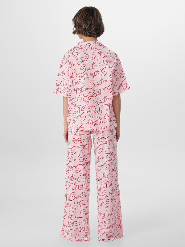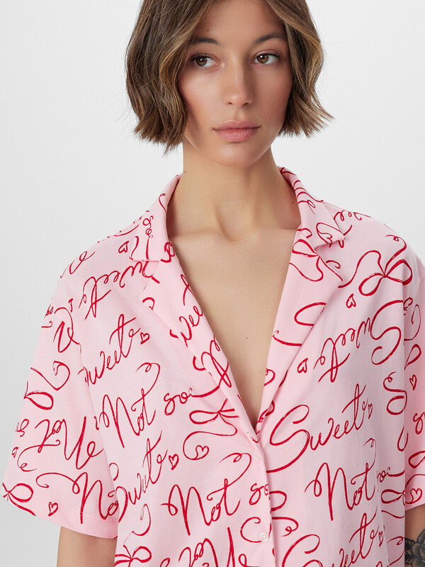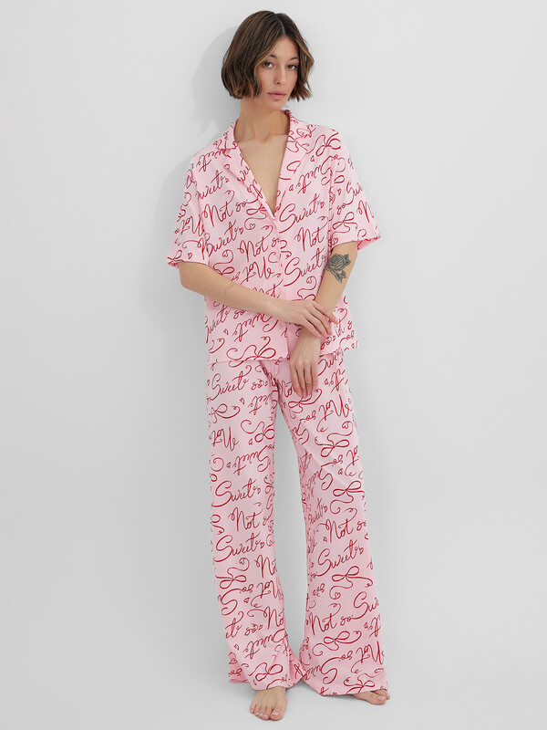 Женская домашняя пижама из рубашки и брюк создана для тех, кто ценит уют и комфорт. Натуральный хлопок обеспечивает нежность и воздухопроницаемость, даря коже приятные ощущения и полную свободу движений. Рубашка свободного кроя с отложным воротником и короткими рукавами выглядит стильно и элегантно. Классическая застежка на пуговицы удобна в использовании, а аккуратная обработка всех краев обеспечивает долговечность носки.