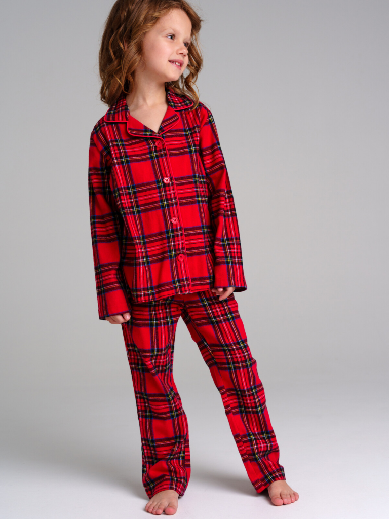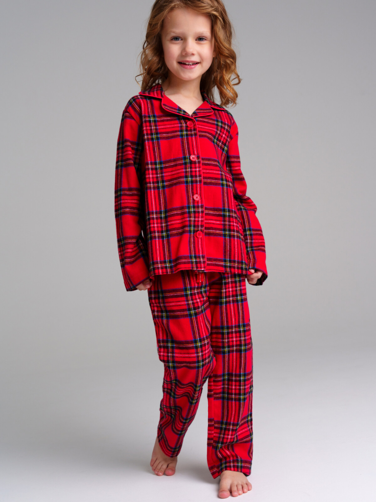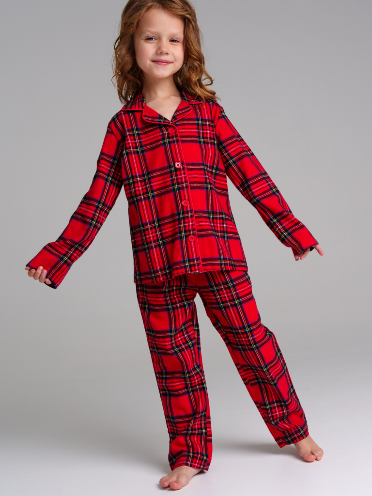 Пижама текстильная. 100% хлопок. Фланель - мягкая, приятная к телу ткань с небольшим начесом. Застежка на пуговицы. Карманы в брюках. Эластичный пояс с тесьмой позволяет легко надевать брюки и утягивать до комфортной посадки.