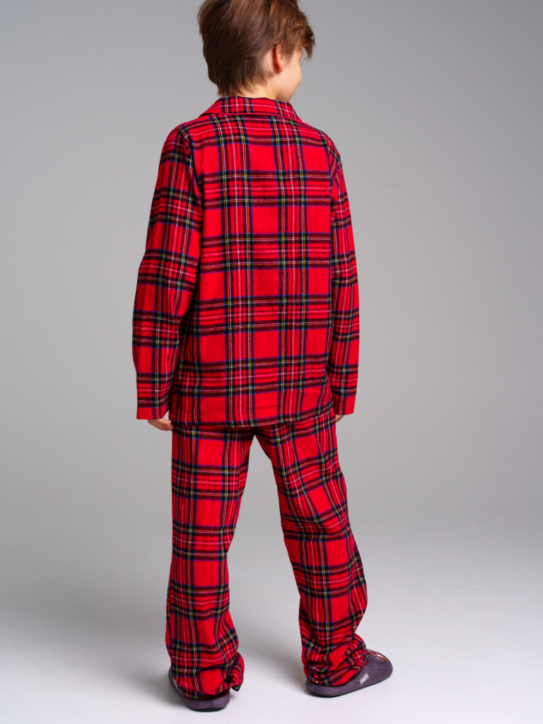 Пижама текстильная. 100% хлопок. Фланель - мягкая, приятная к телу ткань с небольшим начесом. Застежка на пуговицы. Карманы в брюках. Эластичный пояс с тесьмой позволяет легко надевать брюки и утягивать до комфортной посадки.