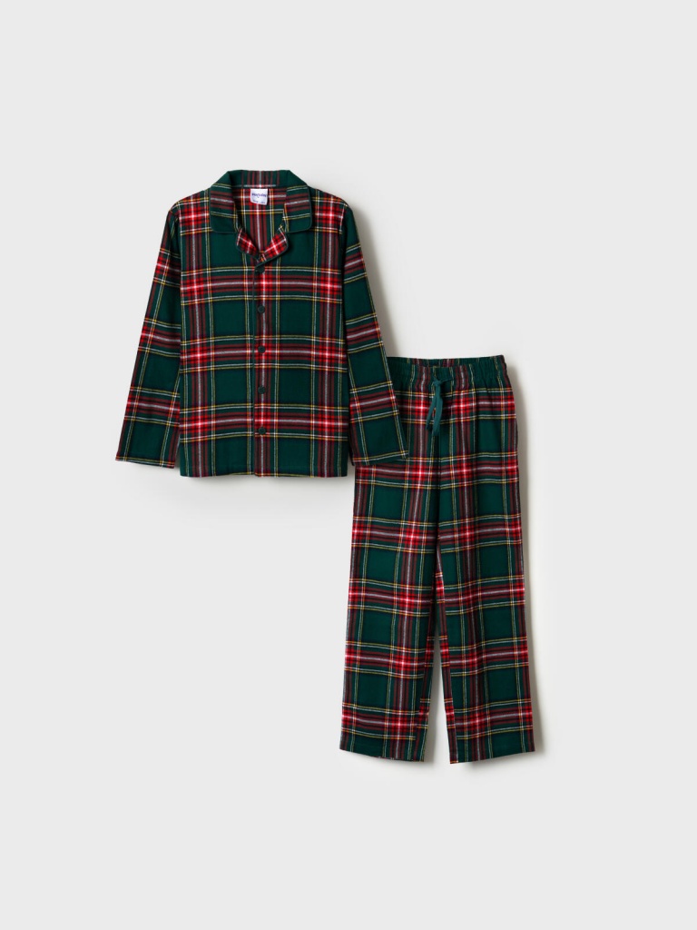 Стильная подростковая пижама для мальчика от PlayToday — удобный комплект из мягкой фланели с микроначёсом. В набор входит рубашка с пуговицами и прямые брюки на резинке. Теплая и уютная ткань обеспечивает комфортный сон и подходит для домашнего отдыха в прохладное время года.Преимущества модели:+ натуральная фланель с микроначёсом — мягкая, дышащая и приятная к телу+ застёжка на пуговицы — классический и удобный вариант+ пояс на резинке — удобная посадка без давления+ современный клетчатый дизайн — стильный вариант для мальчиков и подростковКогда и как носить:Пижама идеально подойдёт для сна, отдыха дома, поездок на дачу и гостевых ночёвок. Благодаря стильному клетчатому принту она выглядит современно и может использоваться как домашний костюм.Совет по стилю:Сочетайте пижаму с мягким халатом и уютными тапочками PlayToday, чтобы создать полный домашний образ.Размеры: 128-176 см — для мальчиков от 8 лет и старше. Подходит для школьников и подростков.Стильная клетчатая фланелевая пижама для мальчиков от PlayToday — тепло, уют и современный дизайн для сна и дома.
