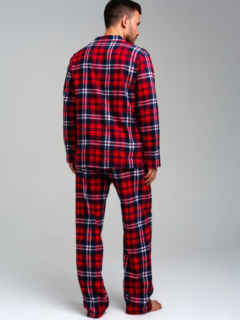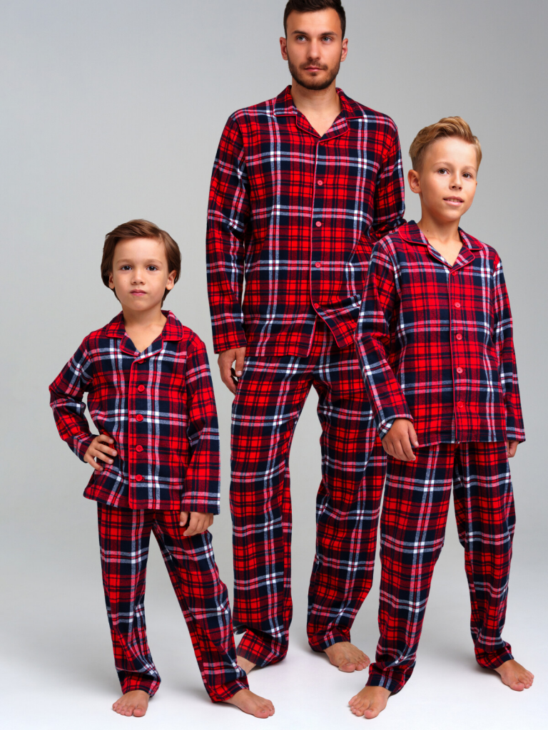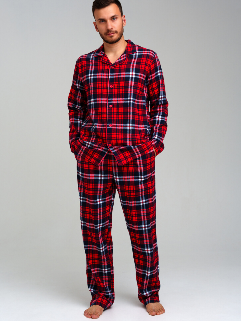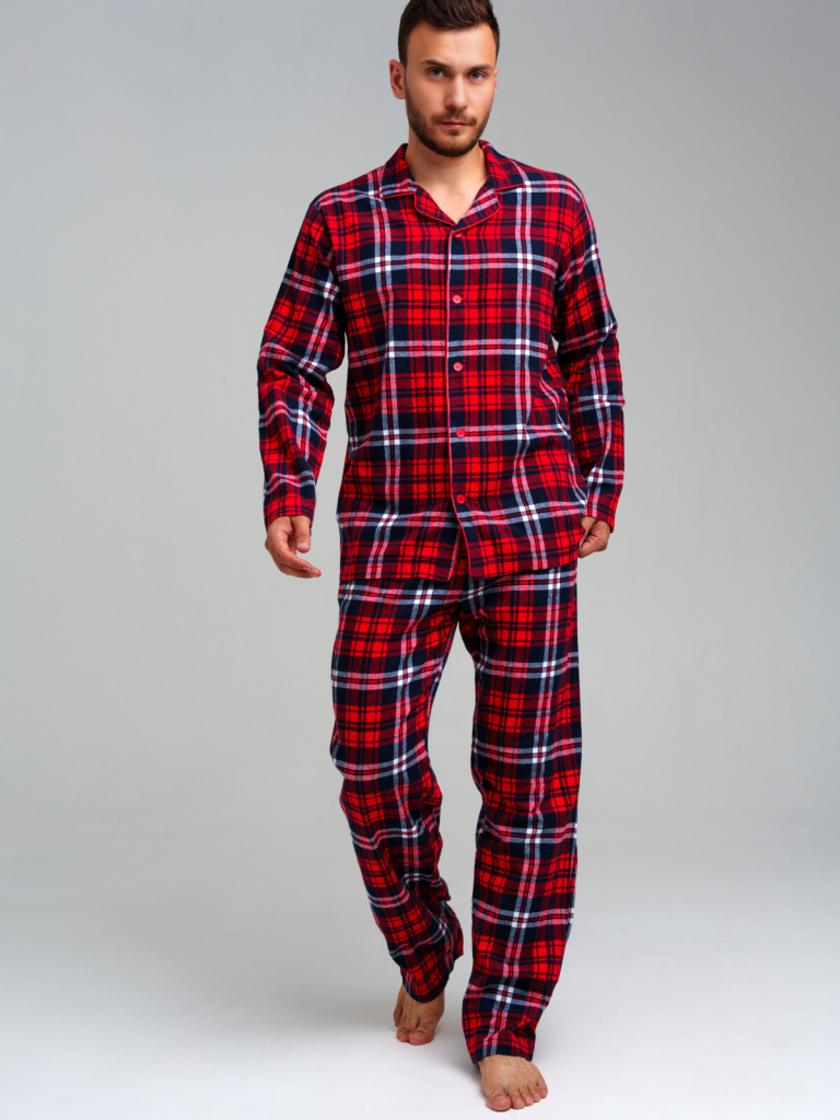 Мужская фланелевая пижама. 100% хлопок. Фланель - мягкая, приятная к телу ткань с небольшим начесом. Застежка на пуговицы. Карманы в брюках. Эластичный пояс с тесьмой позволяет легко надевать брюки и утягивать до комфортной посадки. Можно составить family look c детским вариантом пижамы аналогичного дизайна.