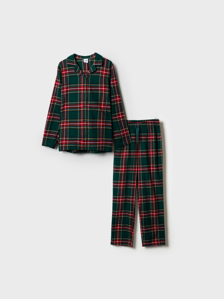 Женская фланелевая пижама в клетку от PlayToday — уютный и стильный комплект для комфортного сна и отдыха. Классический клетчатый принт в глубоких зелёно-красных тонах создаёт атмосферу уюта и уюта, а натуральный хлопок обеспечивает мягкость и тепло.Преимущества модели:+ 100% хлопок — дышащий, гигроскопичный и безопасный для кожи материал+ классический клетчатый принт — универсальный и стильный+ рубашка с отложным воротником и застёжкой на пуговицы+ брюки на мягкой резинке с завязками для регулировки посадки+ лёгкая, но плотная ткань, устойчивая к износу и многократным стиркамКогда и как носить:Подходит для сна, отдыха дома и уютных вечеров. Идеальна на осенне-зимний сезон благодаря фланели, которая сохраняет тепло и не перегревает.Совет по стилю:Сочетайте пижаму с мягким халатом и уютными тапочками PlayToday, чтобы создать полный домашний образ.Размерный ряд: S-XXL.Женская пижама PlayToday — уют, тепло и классический стиль для тех, кто ценит комфорт в каждом мгновении.