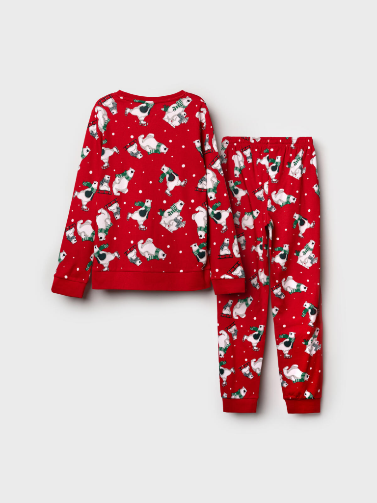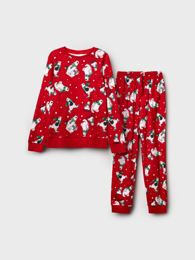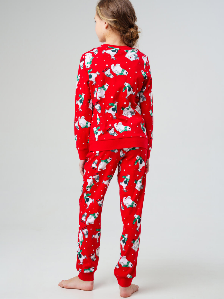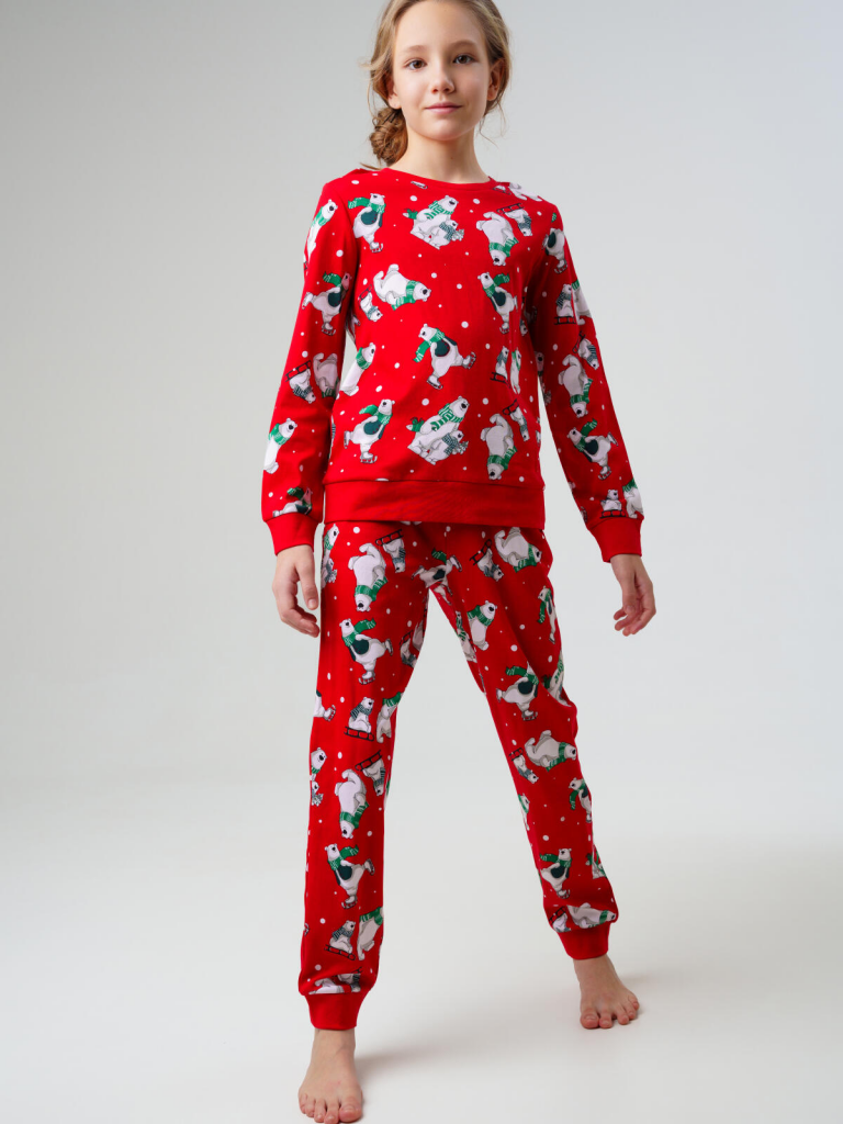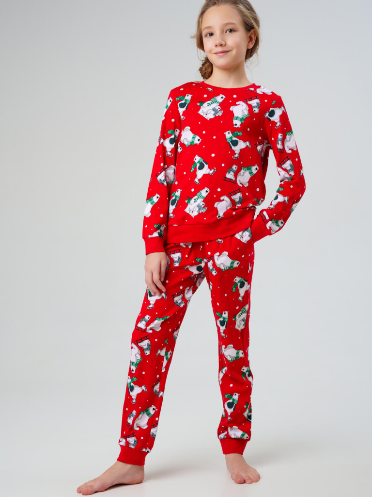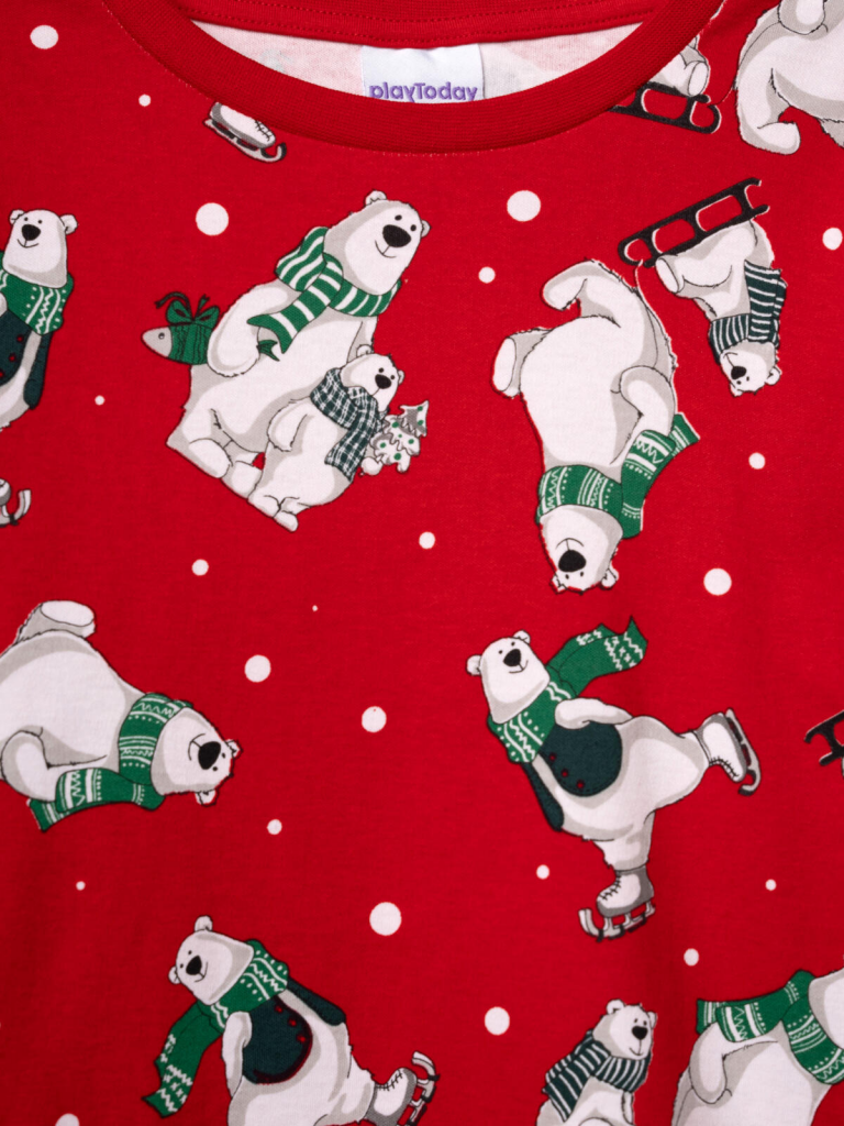 Красная трикотажная пижама для девочки подростка от PlayToday — яркий и удобный комплект для сна и домашнего отдыха. Изготовлена из мягкого хлопкового трикотажа, который дышит, не раздражает кожу и обеспечивает комфорт в любое время года. Брюки на удобной резинке фиксируются без давления, а свободный крой не сковывает движений во сне.Преимущества модели:+ хлопковый трикотаж — дышащий и приятный к телу материал+ брюки на мягкой резинке — комфорт и удобство для сна+ яркий красный цвет с принтом — праздничное настроение каждый день+ свободный крой — свобода движений ночью и дома+ практичный комплект — легко стирается и сохраняет цветКогда носить:Идеально подходит для сна, домашних игр, уютных вечеров с семьёй и поездок.Совет по стилю:Сочетайте пижаму с мягким халатом или домашними тапочками PlayToday для создания полного уюта.Размеры: 128-170 см — подойдут для девочек от 8 лет и старше.Классическая красная трикотажная пижама для девочки подростка от PlayToday — уют, комфорт и яркое настроение для сна и дома.