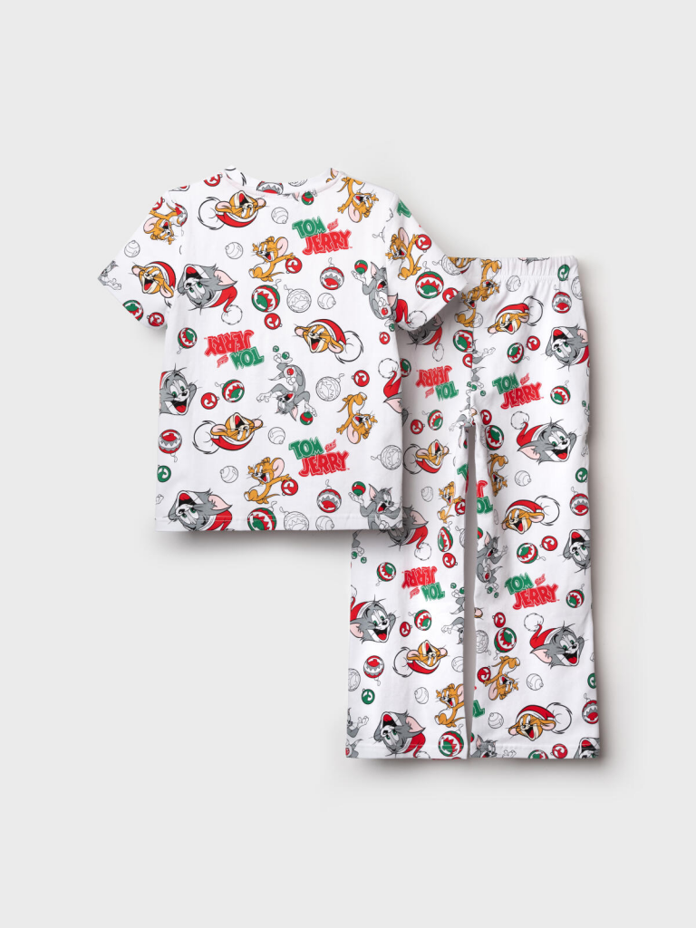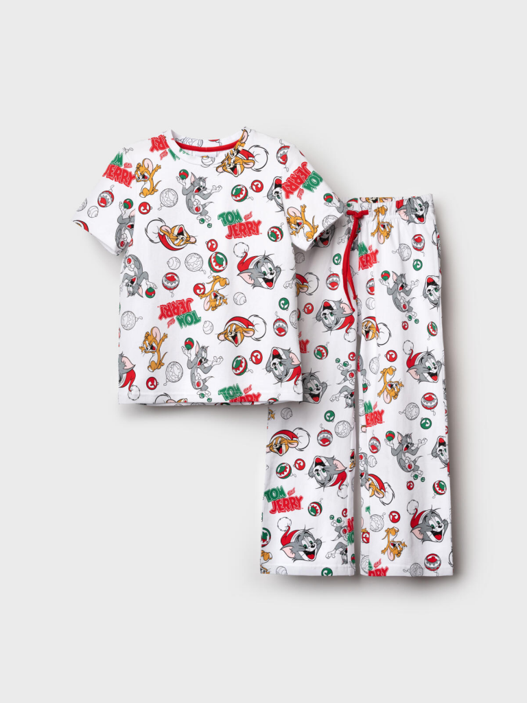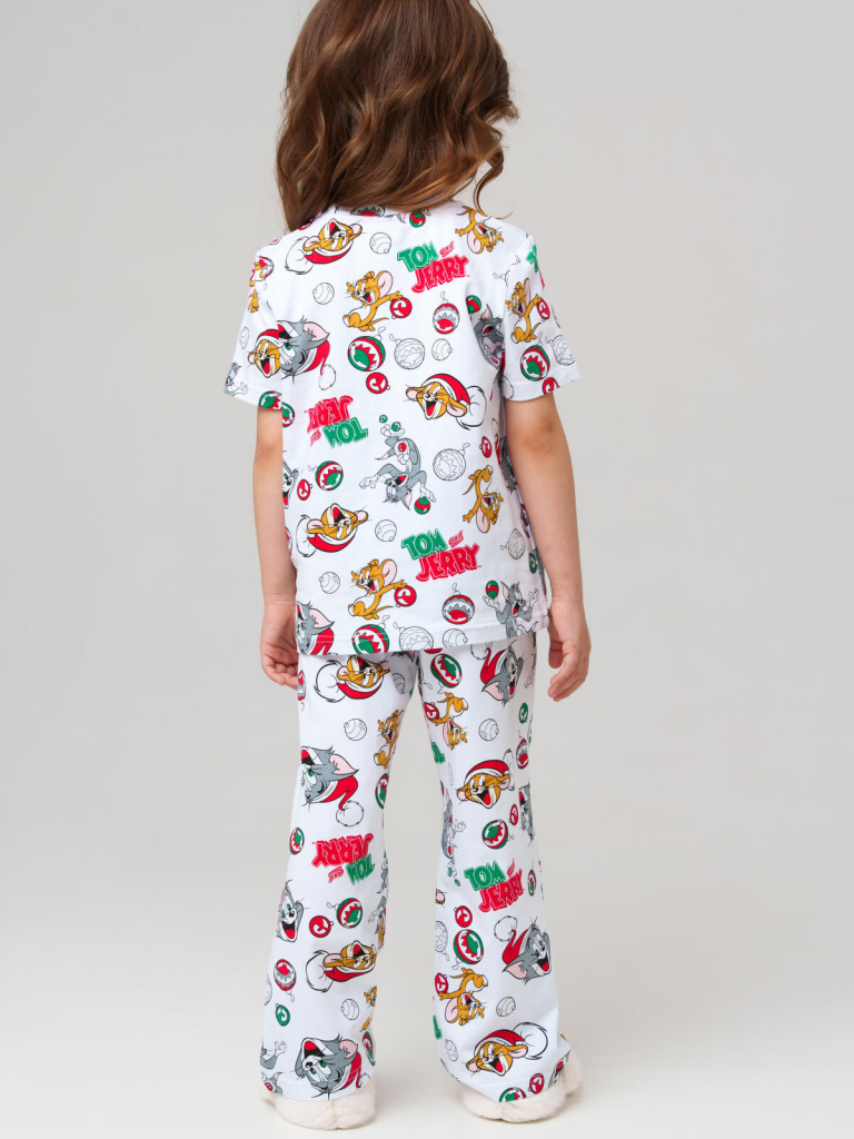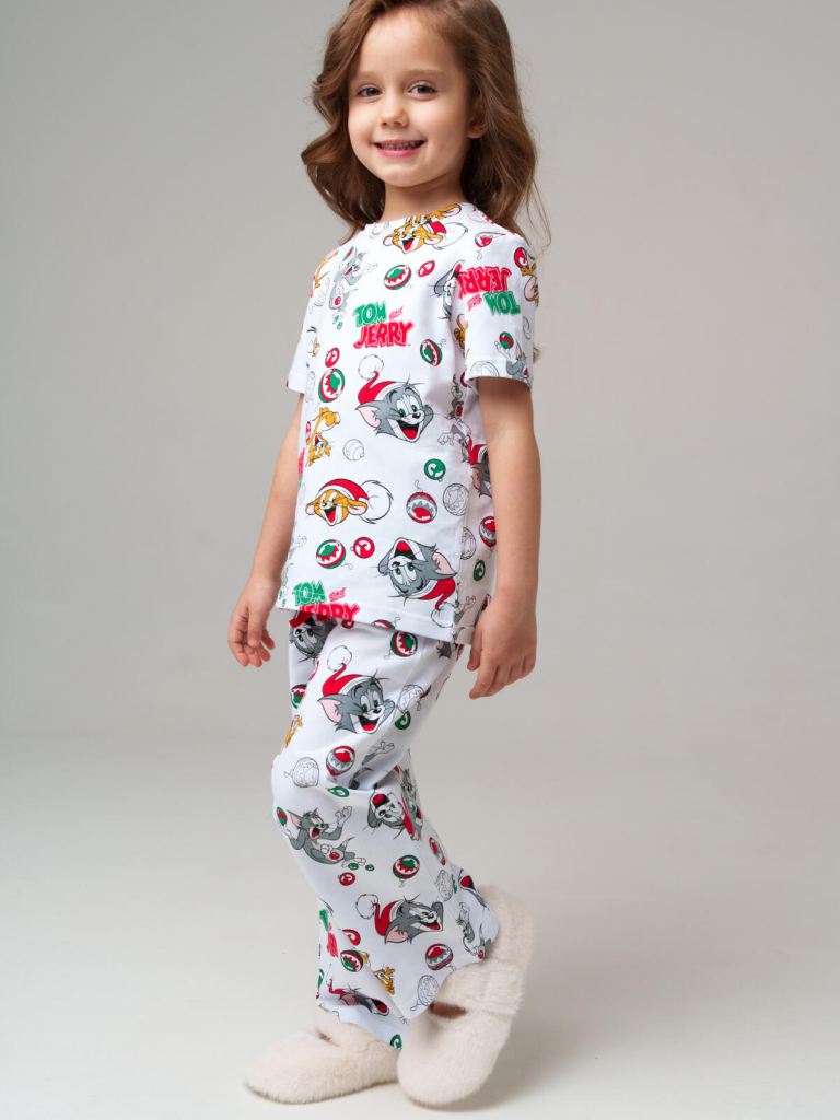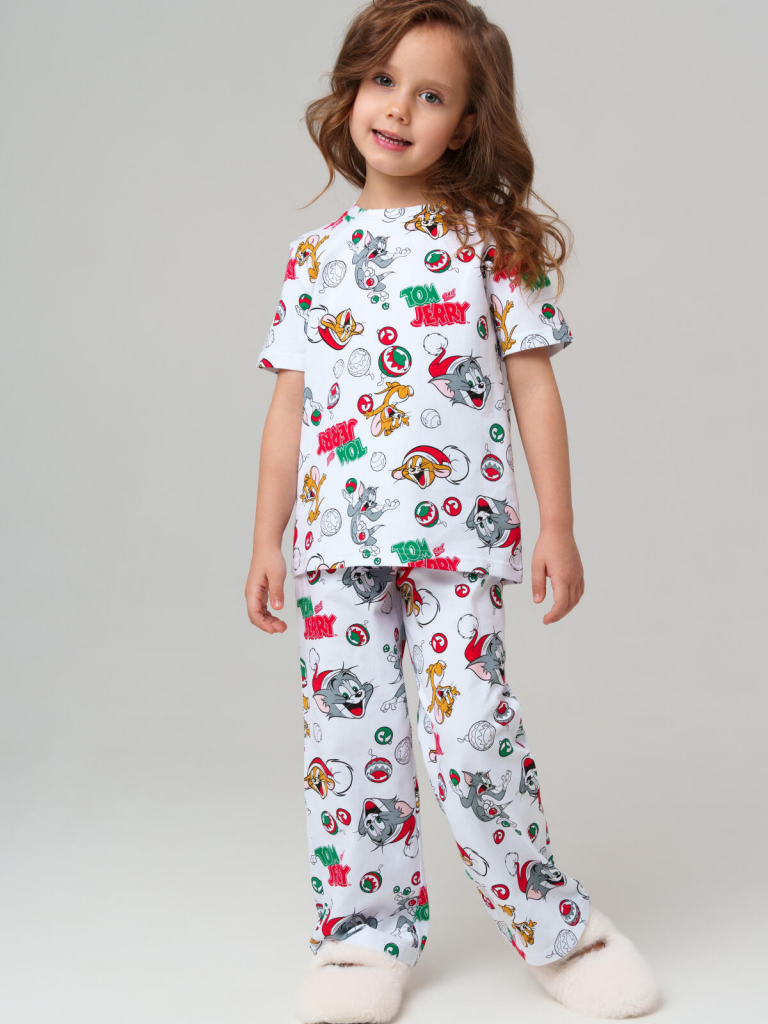 Детская трикотажная пижама для девочки с героями Том и Джерри от PlayToday — яркий и уютный вариант для сна и отдыха дома. В комплект входит футболка с коротким рукавом и прямые брюки на мягкой резинке со шнурком для регулировки. Яркий лицензионный принт с любимыми персонажами делает пижаму особенно привлекательной для детей.Преимущества модели:+ брюки на удобной резинке со шнурком — комфортная посадка и лёгкость переодевания+ мягкий хлопковый трикотаж — приятный к телу, дышащий материал для спокойного сна+ отсутствие карманов — ничего не мешает во время сна+ яркий принт Том и Джерри — любимые герои всегда рядом+ свободный крой — не сковывает движений во время отдыха и игр домаПижама PlayToday создана для того, чтобы сон был комфортным, а вечерние ритуалы превращались в радость. Благодаря яркому принту с Томом и Джерри она станет любимым комплектом девочки и для сна, и для домашних игр.Совет по стилю:Пижаму PlayToday можно носить не только как ночной комплект, но и как уютный домашний костюм для вечерних игр или просмотра мультфильмов.Размеры: 98, 104, 110, 116 и 122 см — подходят для девочек от 3 до 7 лет.Уютная и яркая трикотажная пижама для девочки с Том и Джерри от PlayToday — лучшее решение для сна и домашнего отдыха.