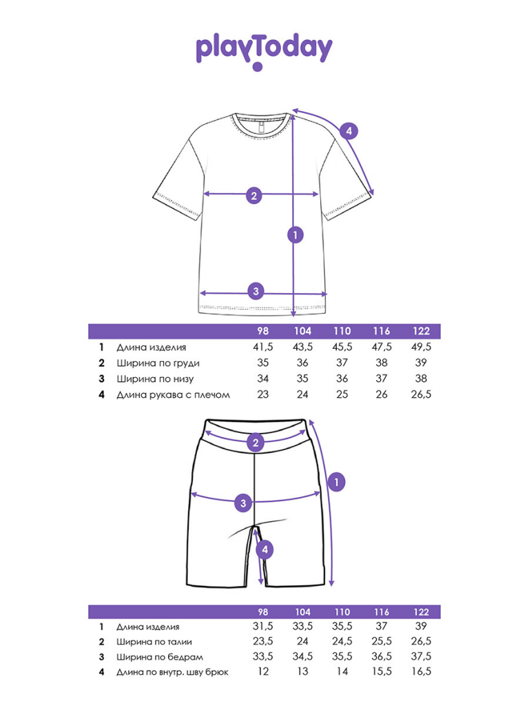Пижама детская для мальчика. Футболка и шорты из эластичного и приятного на ощупь трикотажа. Шорты на резинке со шнурком. Шорты с карманами в боковых швах. Высокое содержание хлопка 95%. Благодаря наличию эластана в составе ткани изделие держит форму и меньше мнется.