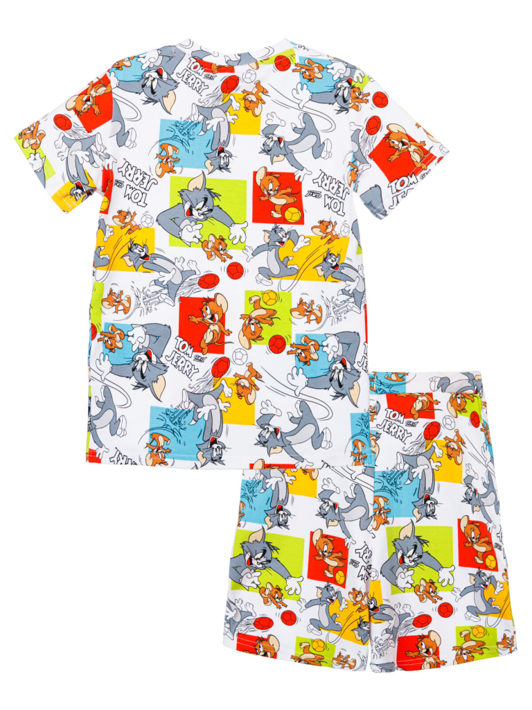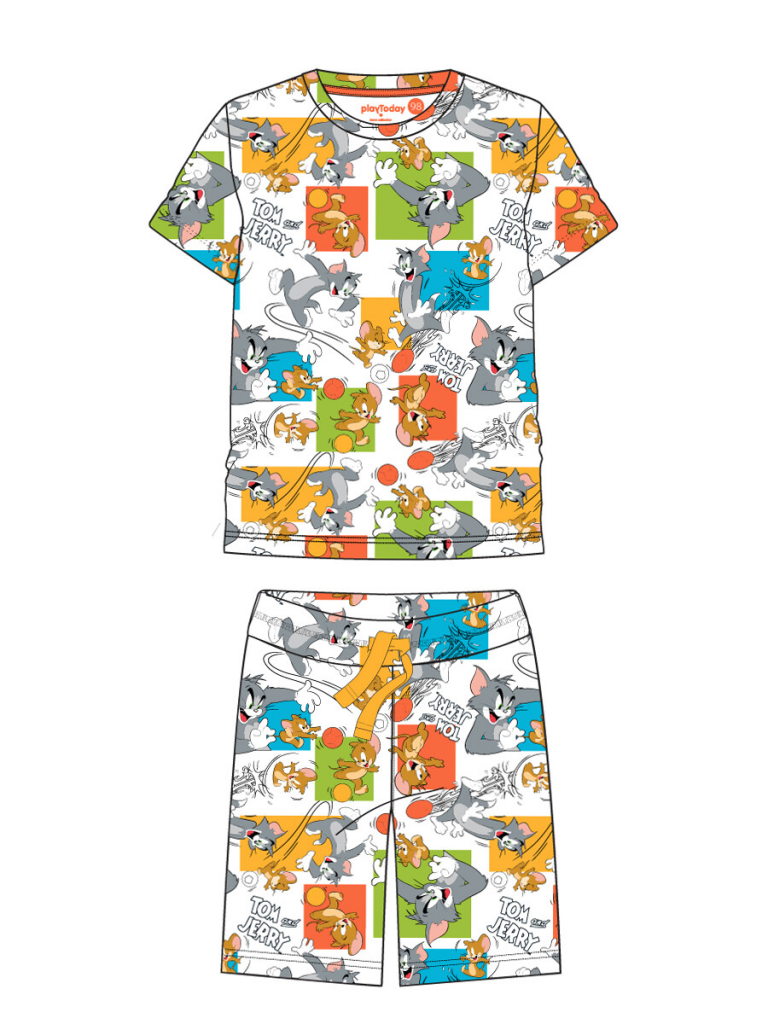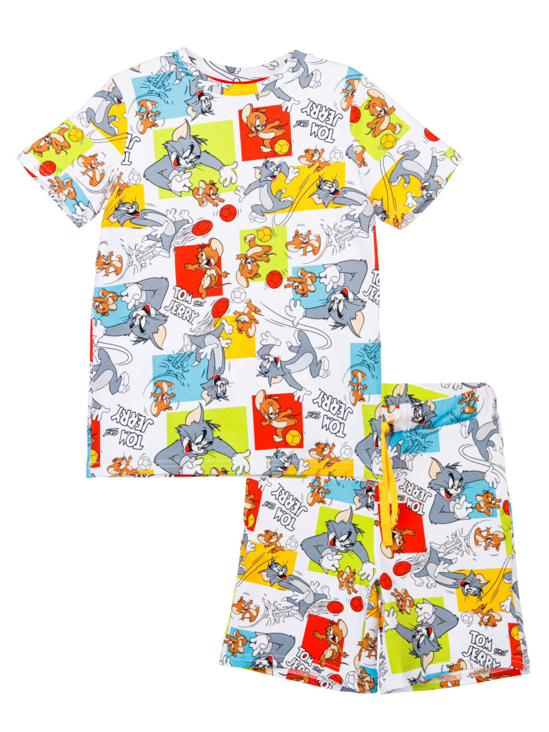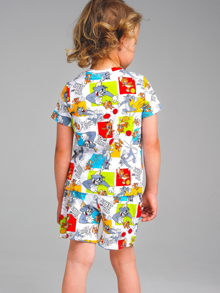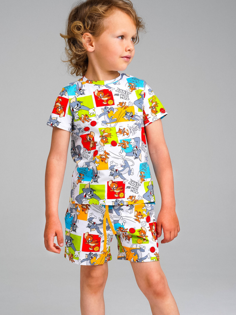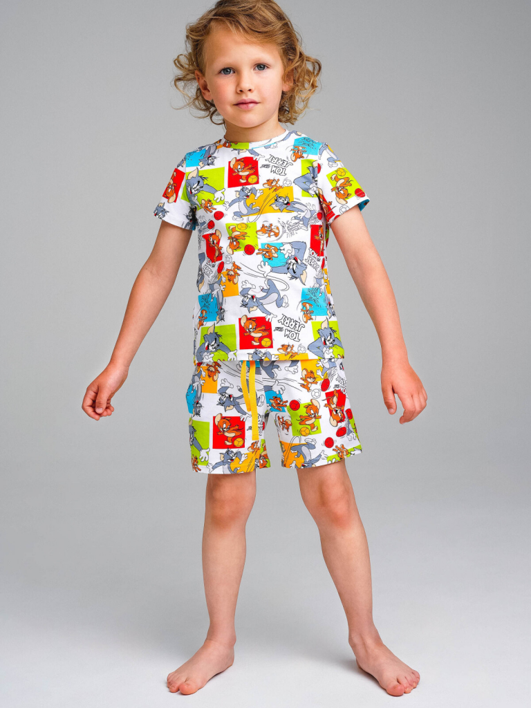 Пижама: футболка, шорты из качественного и приятного на ощупь трикотажа джерси. Высокое содержание хлопка. Благодаря наличию эластана в составе ткани изделие проще в уходе и держит форму. Карманы в боковых швах. Эластичный пояс со шнурком.