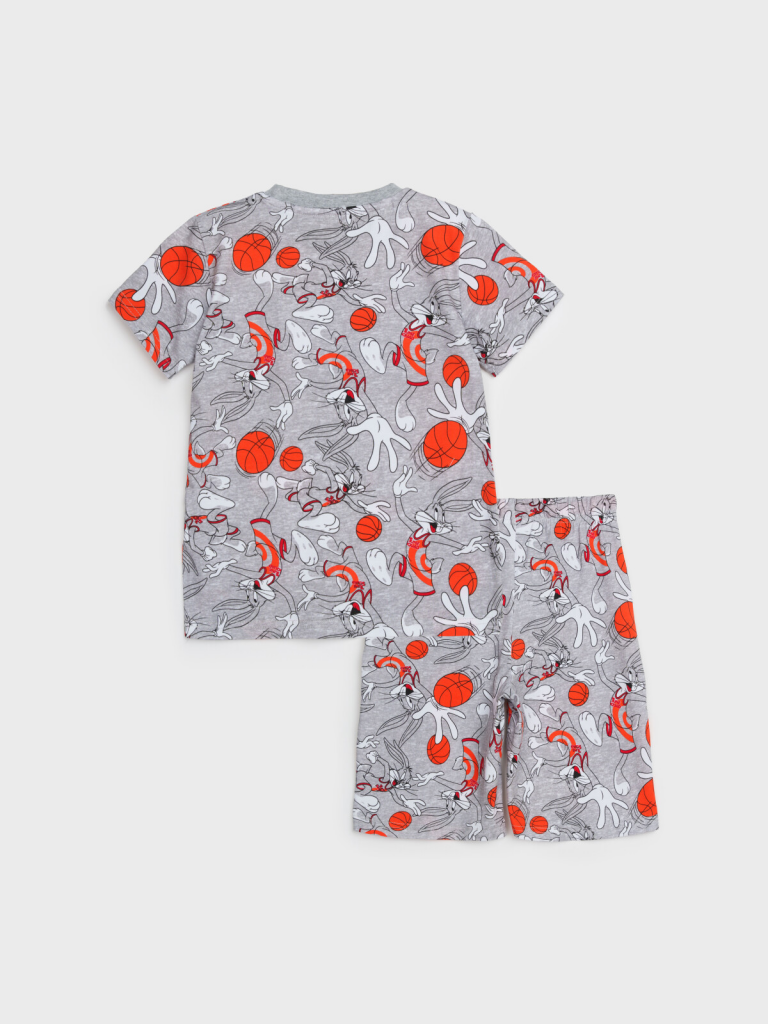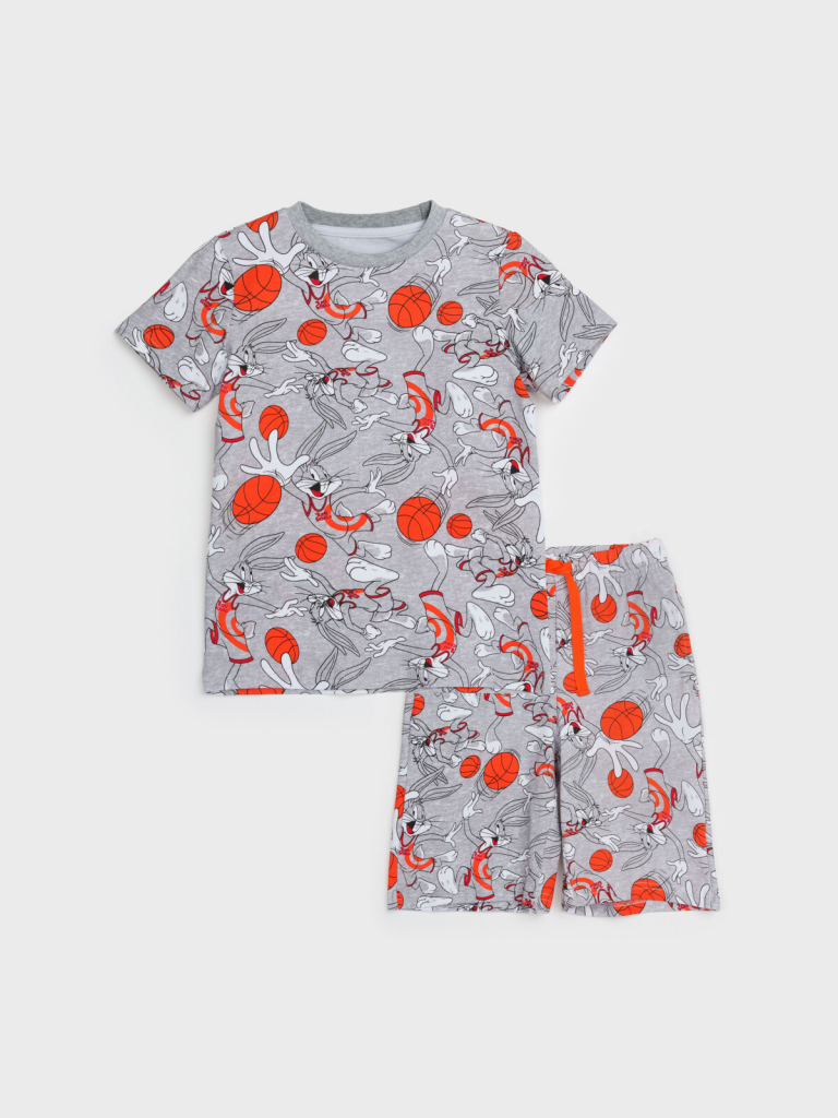 Пижама детская для мальчика. Футболка и шорты из эластичного и приятного на ощупь трикотажа. Шорты на резинке со шнурком. Высокое содержание хлопка 95%. Благодаря наличию эластана в составе ткани изделие держит форму и меньше мнется.