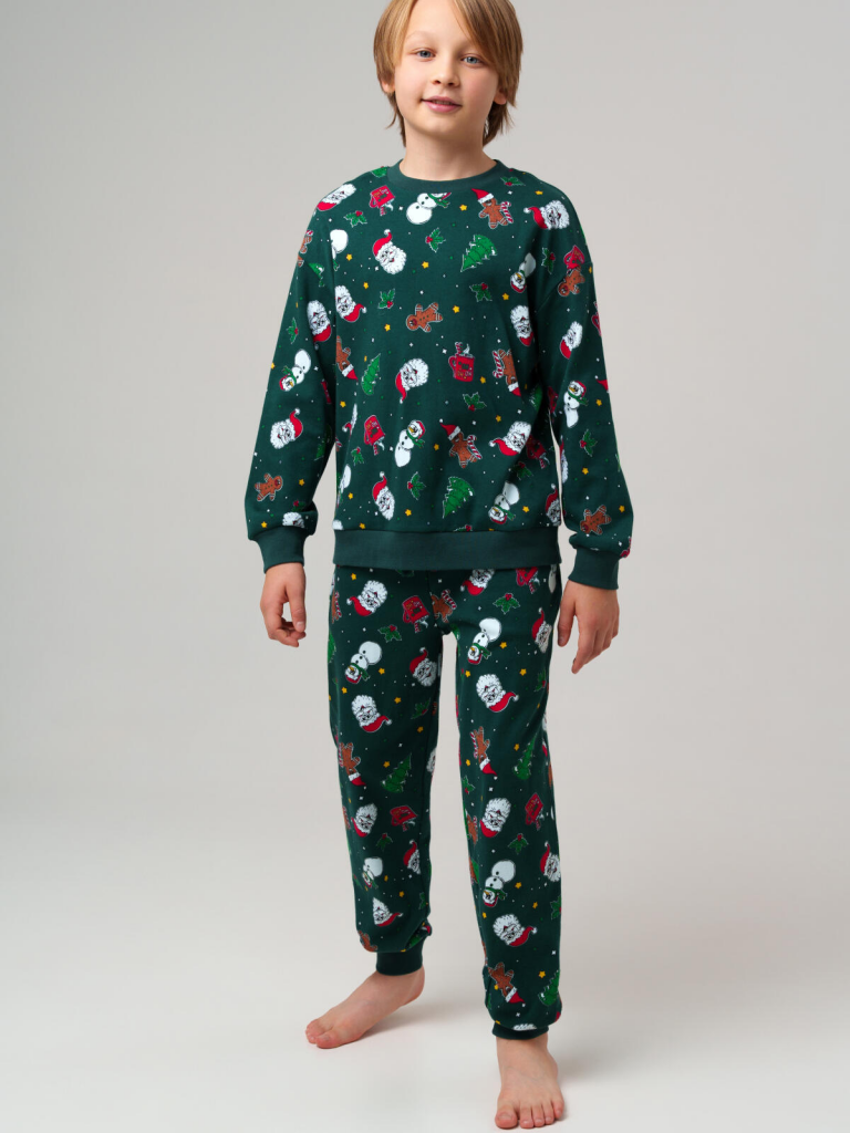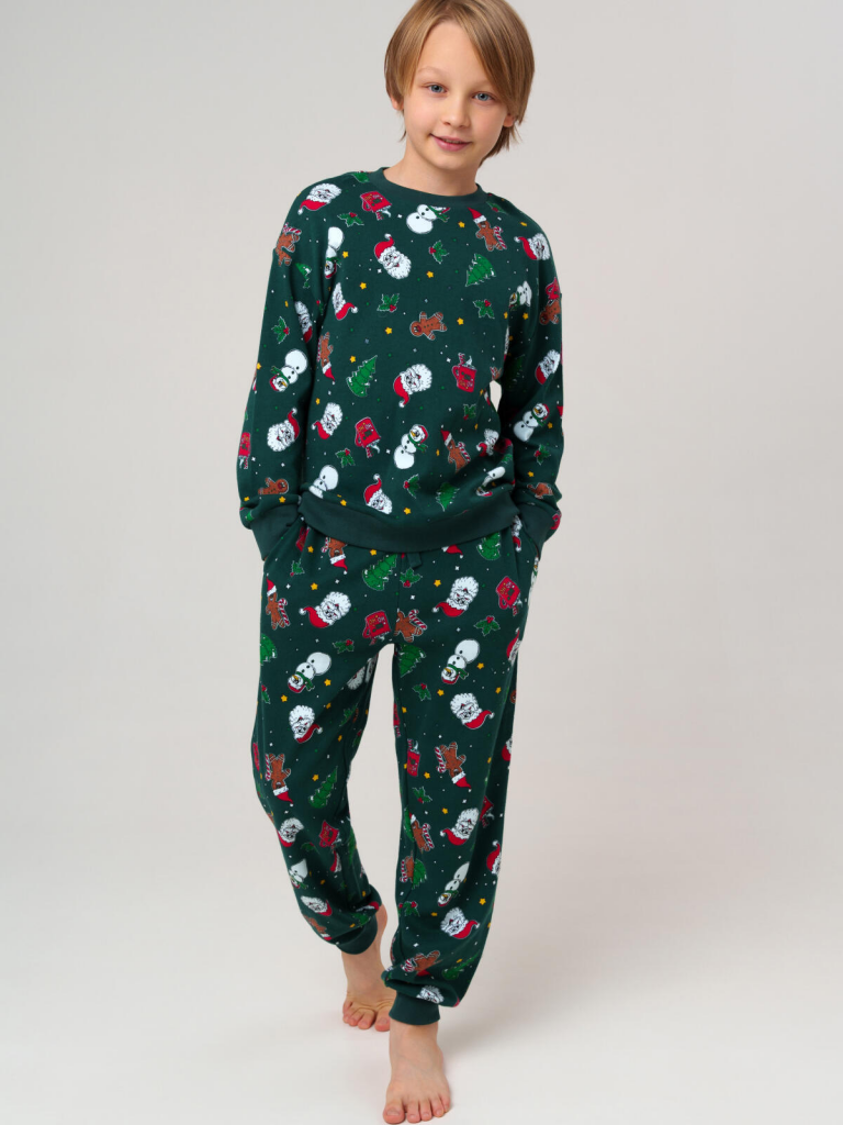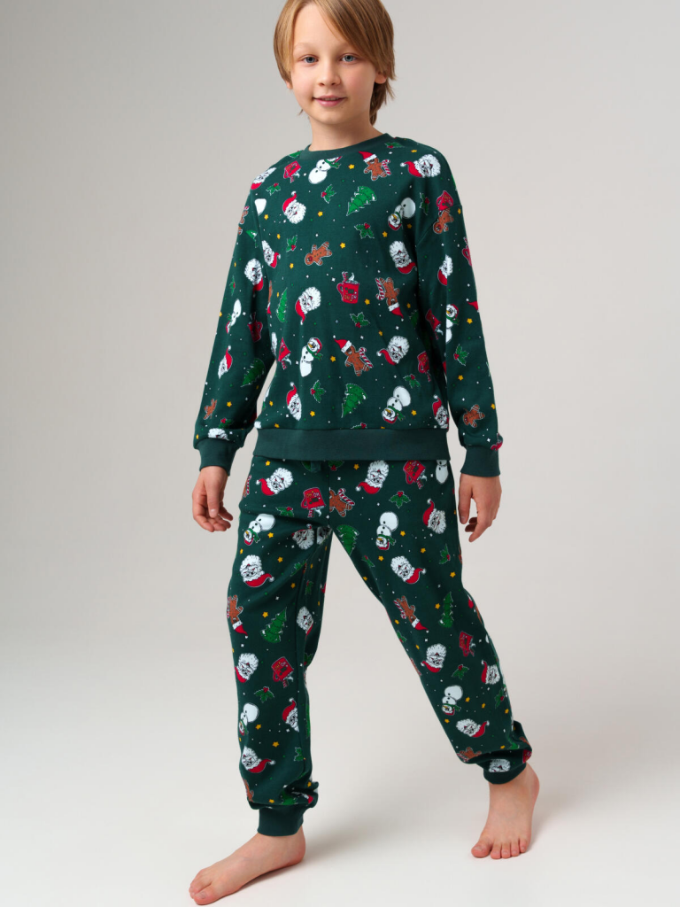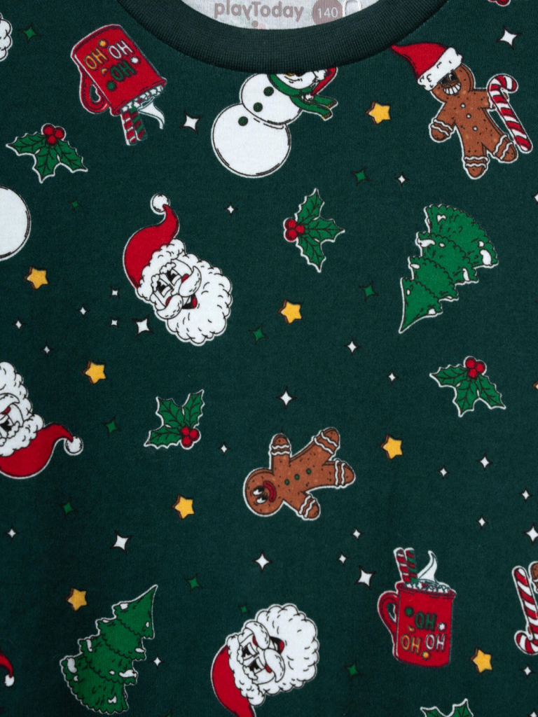 Стильная подростковая пижама для мальчика от PlayToday — удобный комплект для сна и дома, состоящий из мягкой футболки с длинным рукавом и брюк на резинке. Современный дизайн с ярким принтом делает пижаму не только практичной, но и модной частью подросткового гардероба.Преимущества модели:+ хлопковый трикотаж — дышащий, мягкий и гипоаллергенный+ эластан в составе — ткань держит форму и не теряет вид после стирок+ удобный пояс на резинке — комфортная посадка для сна и отдыха+ свободный крой — обеспечивает свободу движений во сне и дома+ стильный принт — создаёт настроение и подчёркивает индивидуальность подросткаКогда и как носить:Пижама подходит для ночного сна, отдыха дома, поездок на дачу и гостевых ночёвок. Благодаря современному дизайну её можно использовать и как домашний костюм для мальчиков.Совет по стилю:Сочетайте пижаму с мягкими тапочками и халатом PlayToday, чтобы создать уютный образ для дома.Размеры: 128-176 см — для мальчиков от 8 лет и старше, подойдёт как для младших школьников, так и для подростков.Стильная пижама для мальчиков-подростков от PlayToday — уют, комфорт и современный дизайн для сна и дома.