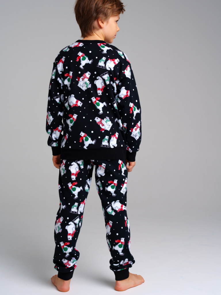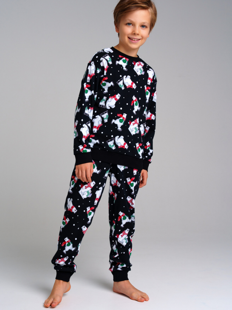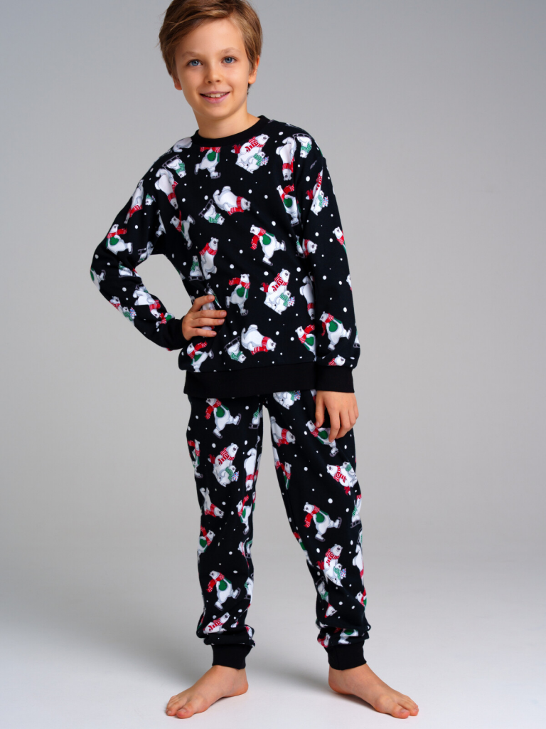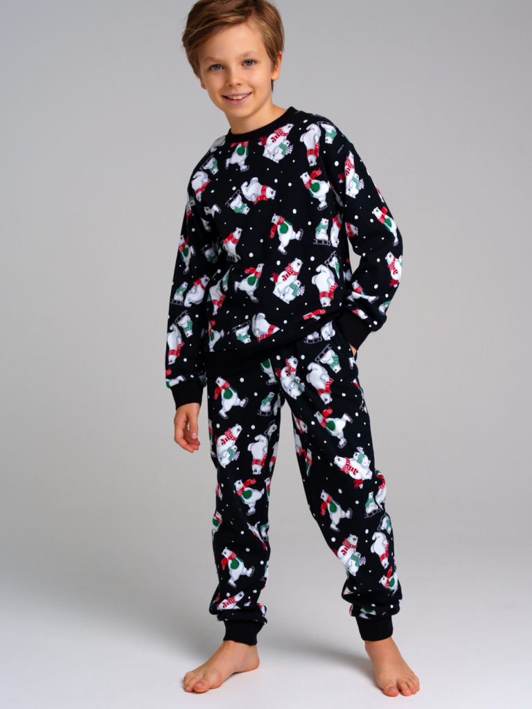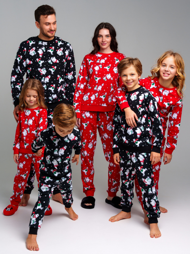 Пижама: лонгслив, брюки из натурального хлопкового двойного трикотажа. 100% хлопок. Эластичные манжеты. Эластичный пояс с тесьмой позволяет легко надевать брюки и утягивать до комфортной посадки. Можно составить family look cо взрослым вариантом пижамы аналогичного дизайна.