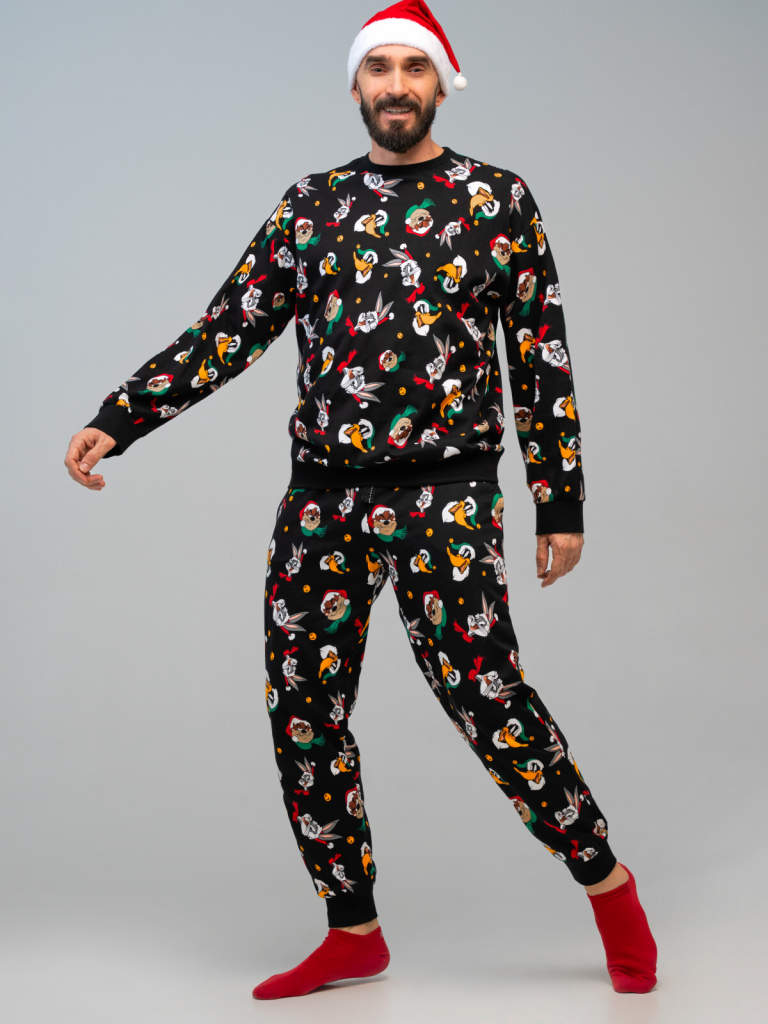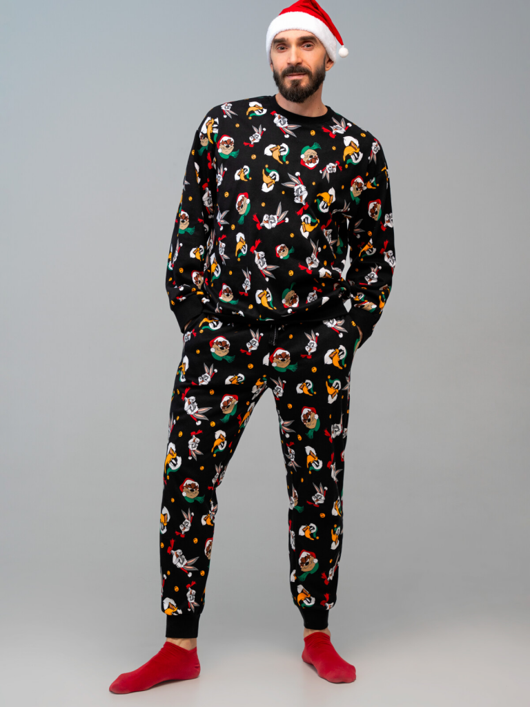 Мужская пижама. Свитшот и штаны из 100% хлопка. Штаны с удобными карманами. Эластичный пояс с тесьмой позволяет легко надевать брюки и утягивать до комфортной посадки.