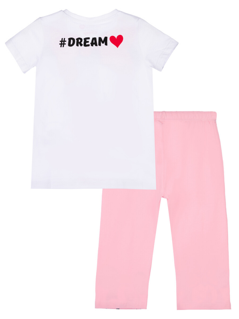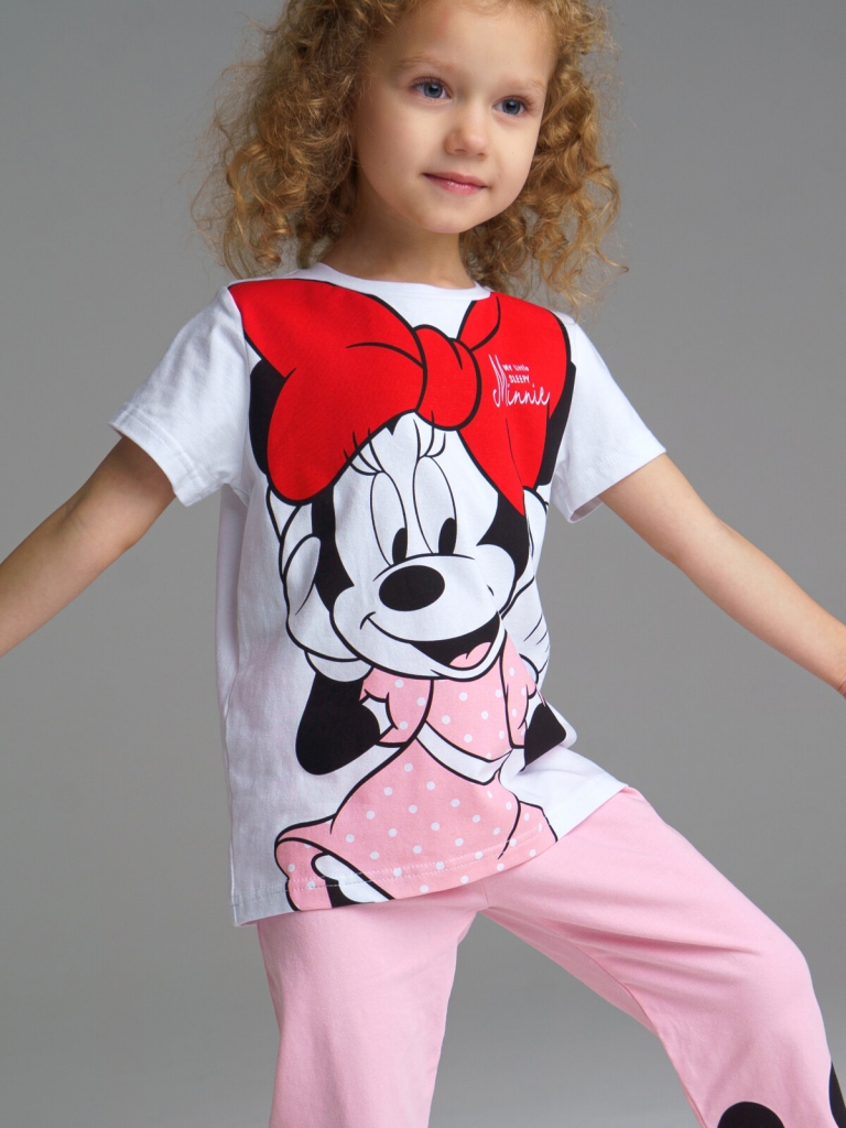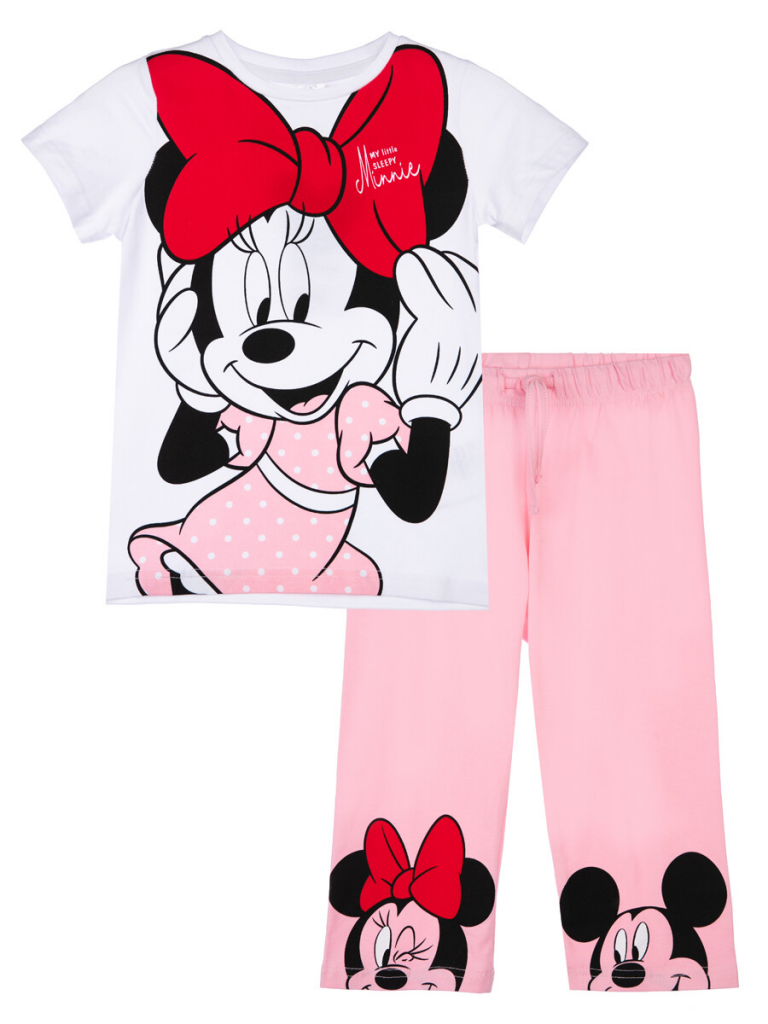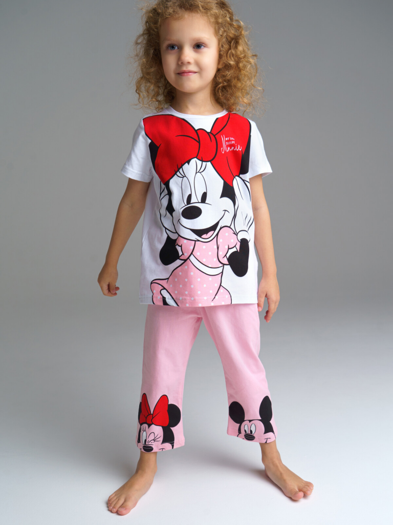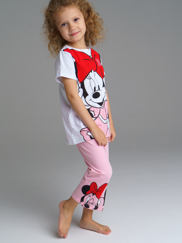 Пижама с персонажами Disney: футболка, бриджи. Высокое содержание хлопка 95%. Благодаря наличию эластана в составе ткани, изделие проще в уходе и держит форму. Бриджи с резинкой по талии и шнурком.