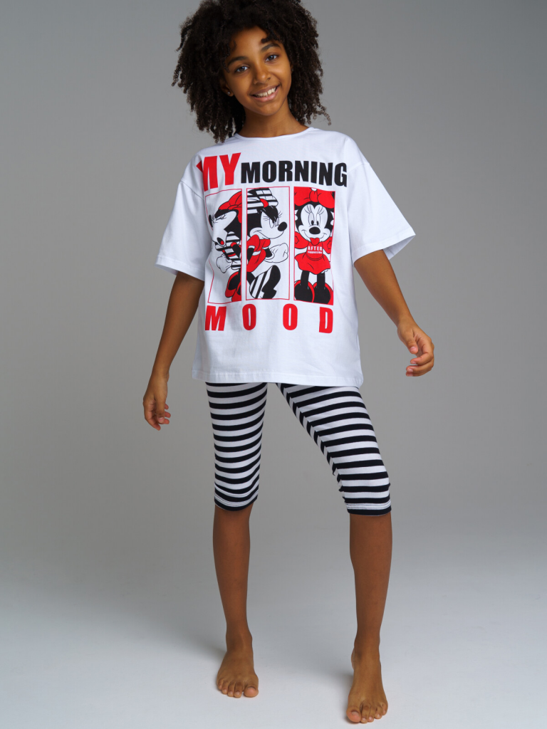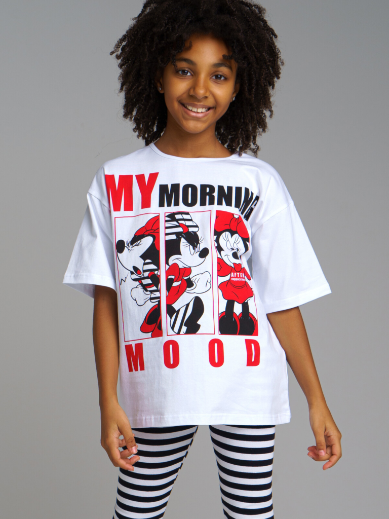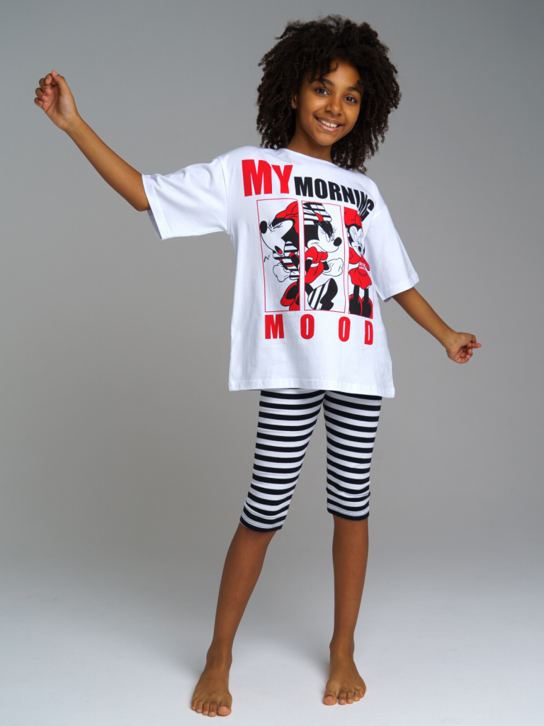> Пижама: футболка и леггинсы для девочки Disney белый,черный,красный
