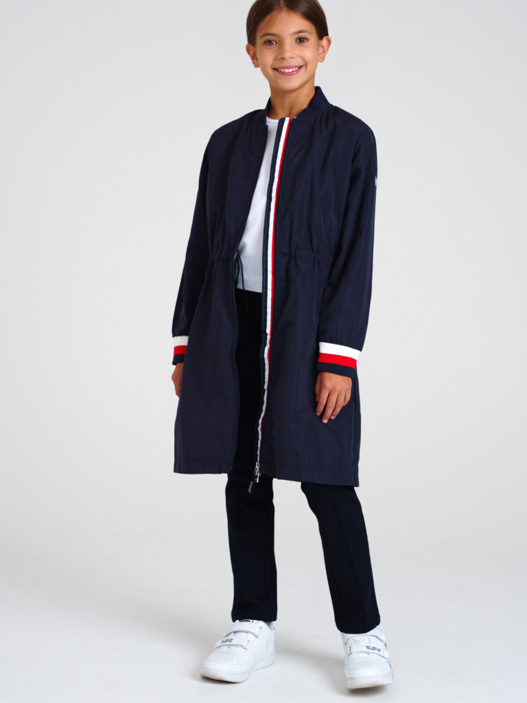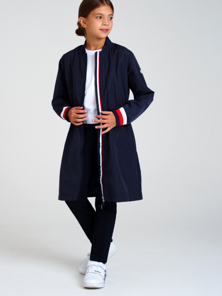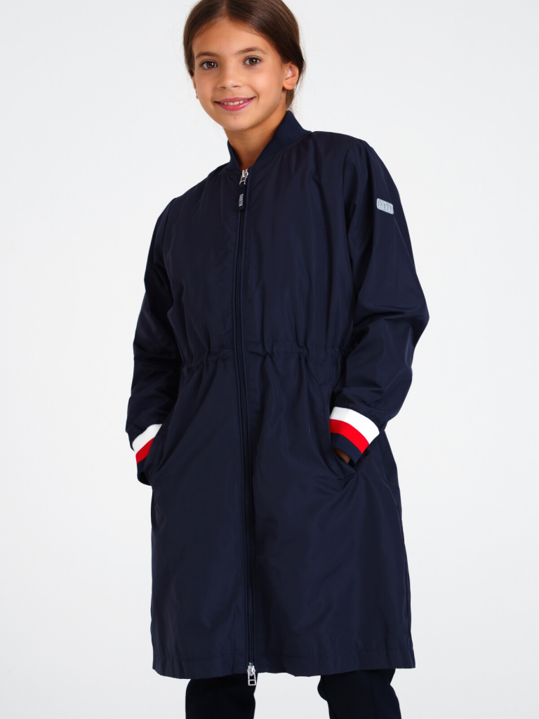 > Плащ текстильный с полиуретановым покрытием для девочек тёмно-синий