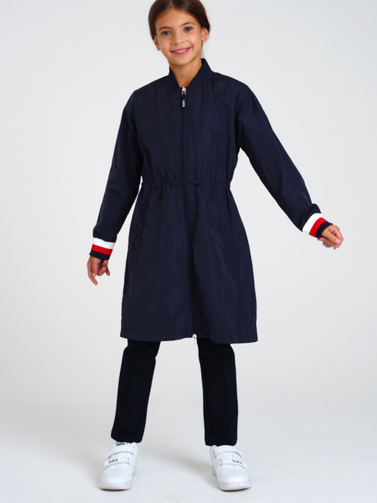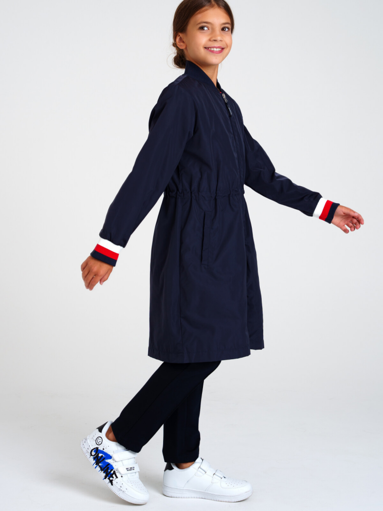 Плащ текстильный с полиуретановым покрытием для девочек тёмно-синий