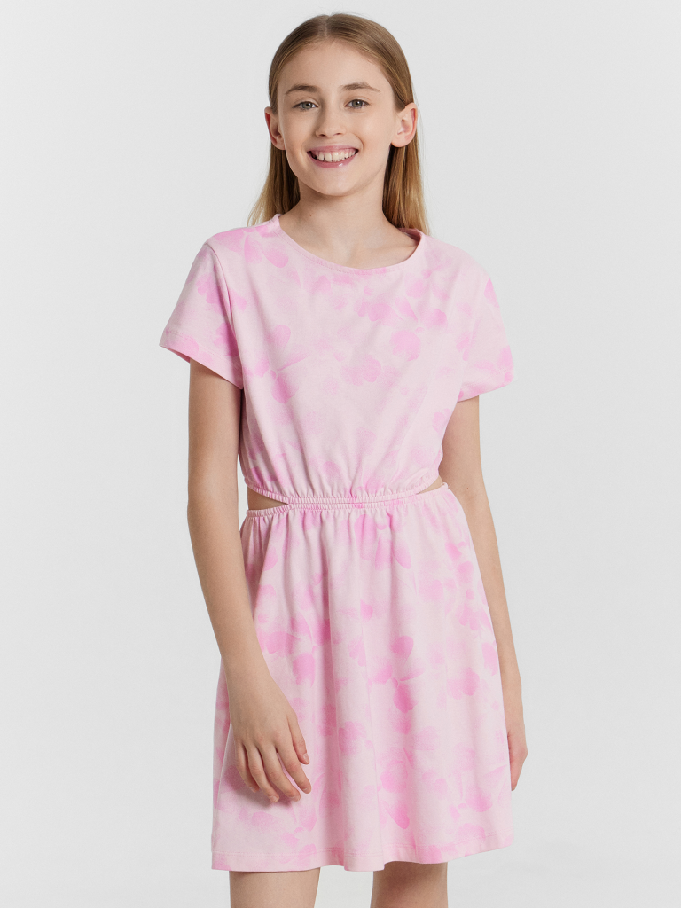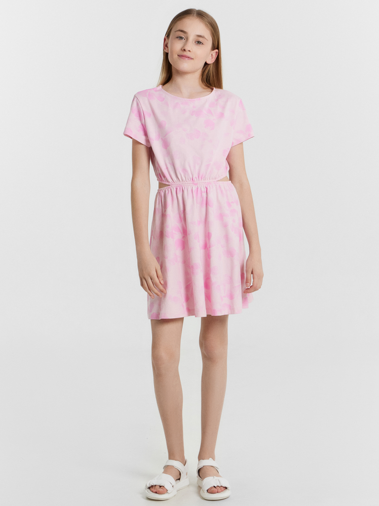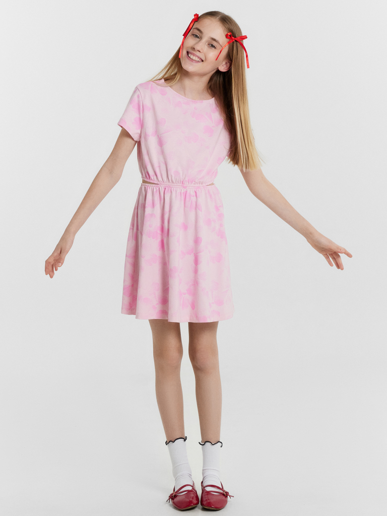Очаровательное летнее платье для девочек — идеальный выбор для теплых дней. Полуприлегающий силуэт обеспечивает комфортную посадку, позволяя ребенку свободно двигаться и наслаждаться активными прогулками. Короткие рукава и круглая горловина создают классический и удобный крой, а эластичная тесьма на поясе слегка присбаривает верх и низ платья, добавляя нежную женственность и легкость образу. Модель выполнена из хлопковой кулирки, которая отличается мягкостью и воздухопроницаемостью, даря комфорт даже в жаркую погоду. Низ изделия аккуратно обработан швом в подгибку, что гарантирует долговечность и аккуратный вид. Этот наряд прекрасно подойдет как для повседневных прогулок, так и для праздничных мероприятий, сочетая удобство, стиль и натуральность материалов. Отличный вариант для летнего гардероба!