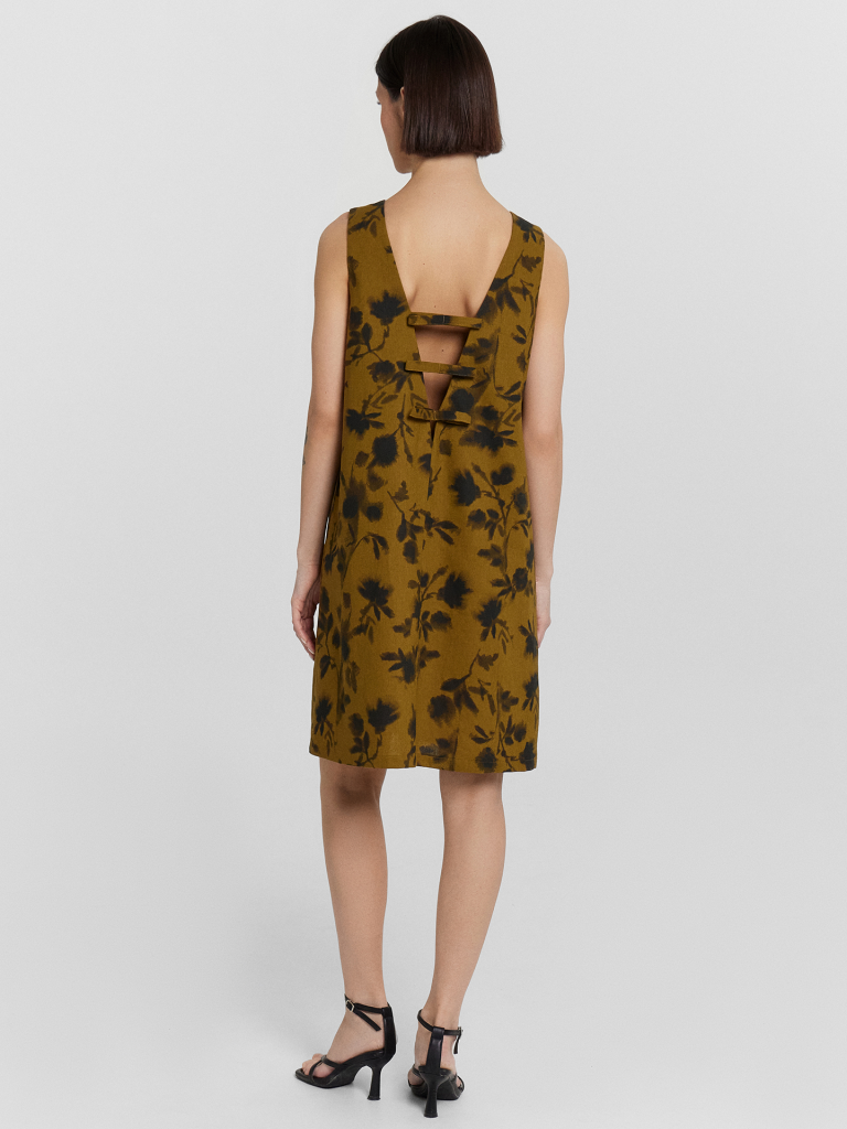 Платье A-силуэта — стильное и женственное решение для легких и элегантных образов. Мини-длина подчеркивает грациозность, а круглая горловина спереди гармонично сочетается с V-образным углубленным вырезом на спинке, придавая модели изящность и утонченность. Декоративные бантики на вырезе сзади добавляют игривый акцент, делая образ нежным и оригинальным. Перед и спинка выполнены на подкладке из основной ткани, что повышает комфорт и поддерживает идеальную форму платья. Нижний срез обработан швом вподгибку, гарантирую аккуратность и долговечность изделия. Выполненное из натуральных материалов — льна и хлопка, платье приятно ощущается на коже, позволяя ей дышать и обеспечивая комфорт в теплую погоду. Эта модель идеально подойдет для летних прогулок, встреч с друзьями или романтических вечеров, создавая легкий, воздушный и элегантный образ!