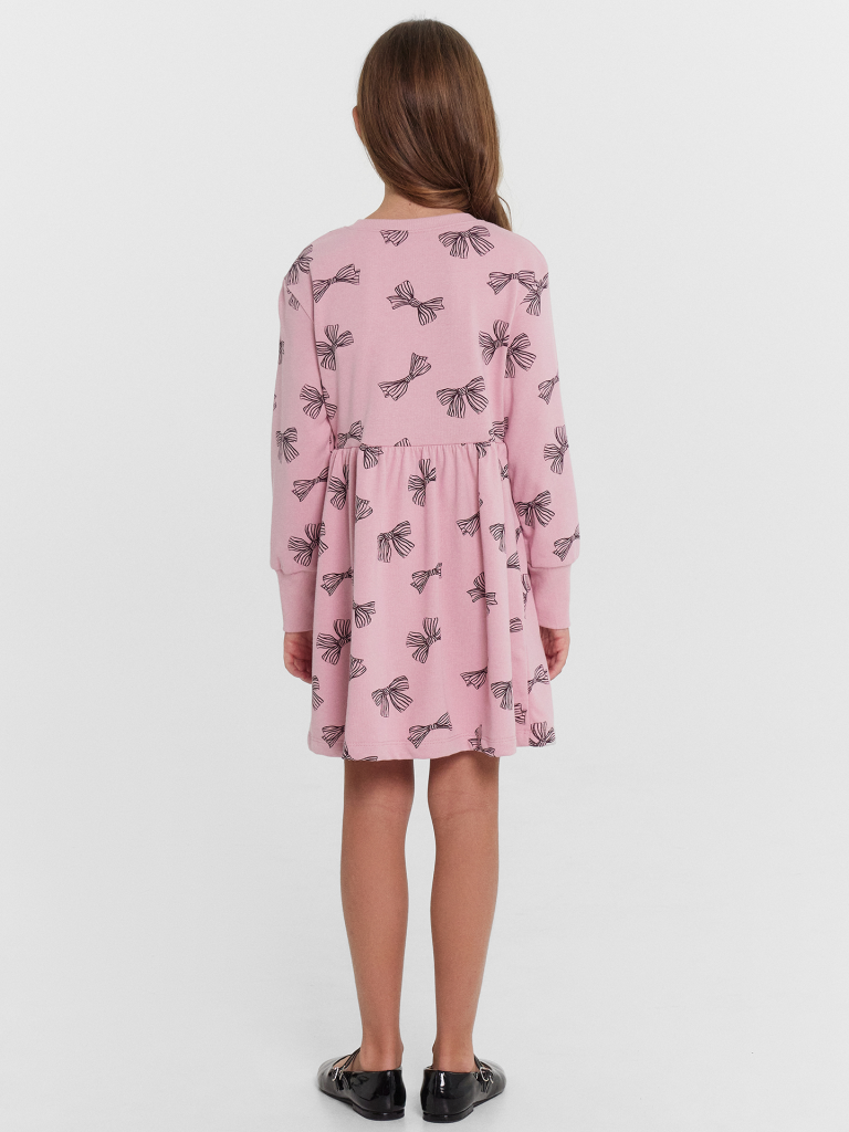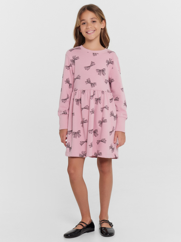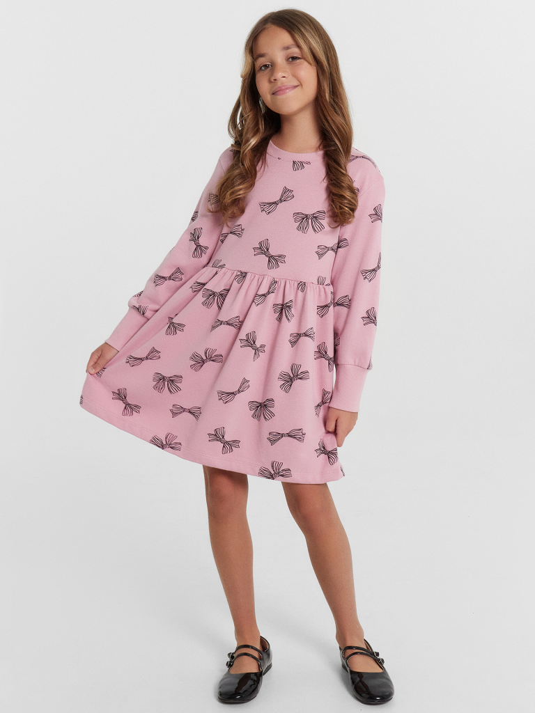 Платье прямого силуэта, с отрезным воланом по талии. Круглый вырез горловины.