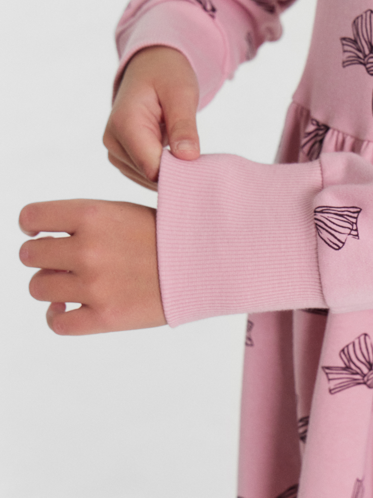 рукавов притачены манжеты из рибаны. Низ изделия обработан на 2-х игольной плоскошовной машине швом в подгибку.