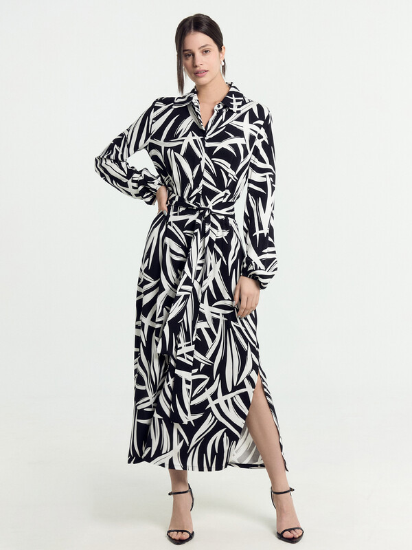 Платье черно -белые веточки
