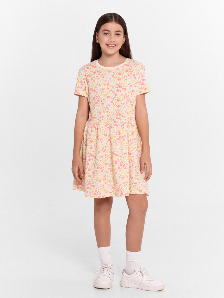 Милое платье для девочек, выполненное из 100% высококачественного хлопка. Длина выше колена, круглый вырез, рукава короткие. Материал очень приятный к телу, хорошо пропускает воздух, что позволяет ребенку чувствовать себя комфортно даже в жаркую погоду. Мягкое, слегка эластичное, комфортно сидит по фигуре, не стесняет движений. Представлено в широком размерном ряде и цветовой палитре. Подходит в качестве одежды для девочек на каждый день в теплое время года. Рекомендуем!