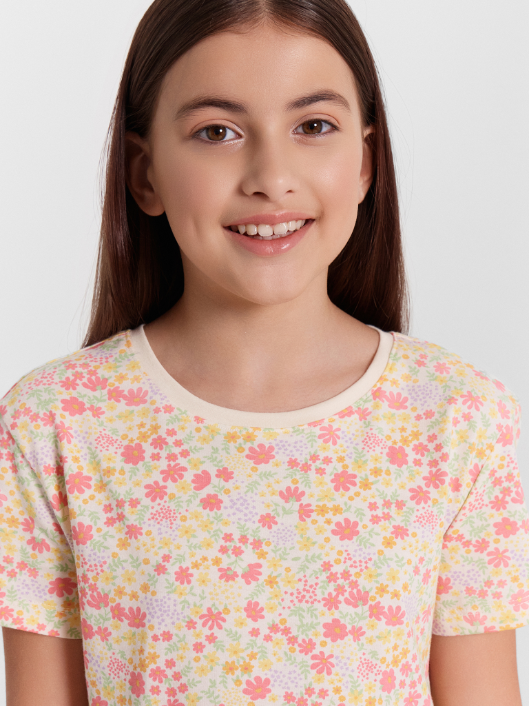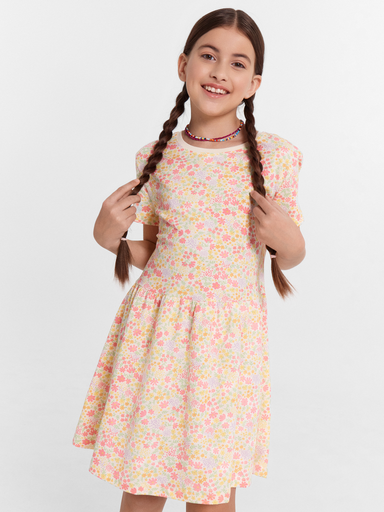 Милое платье, выполненное из 100% высококачественного хлопка, станет прекрасным дополнением гардероба каждой девочки. Длина выше колена, круглый вырез и короткие рукава делают его удобным и стильным вариантом для теплой погоды. Материал очень приятный к телу и отлично пропускает воздух, обеспечивая комфорт в течение всего дня. Платье мягкое, слегка эластичное, идеально сидит по фигуре и не стесняет движений. Представлено в широком размерном ряде и разнообразной цветовой палитре. Рекомендуем!