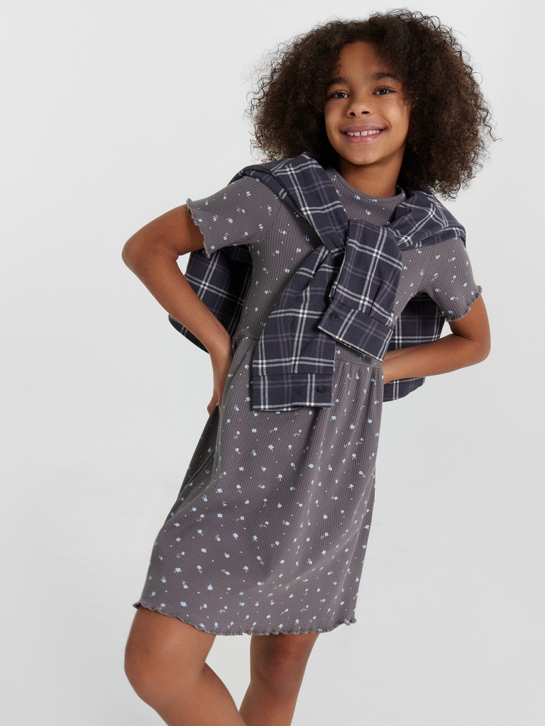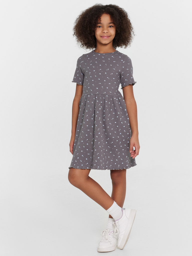 Платье цветочки на т.сером