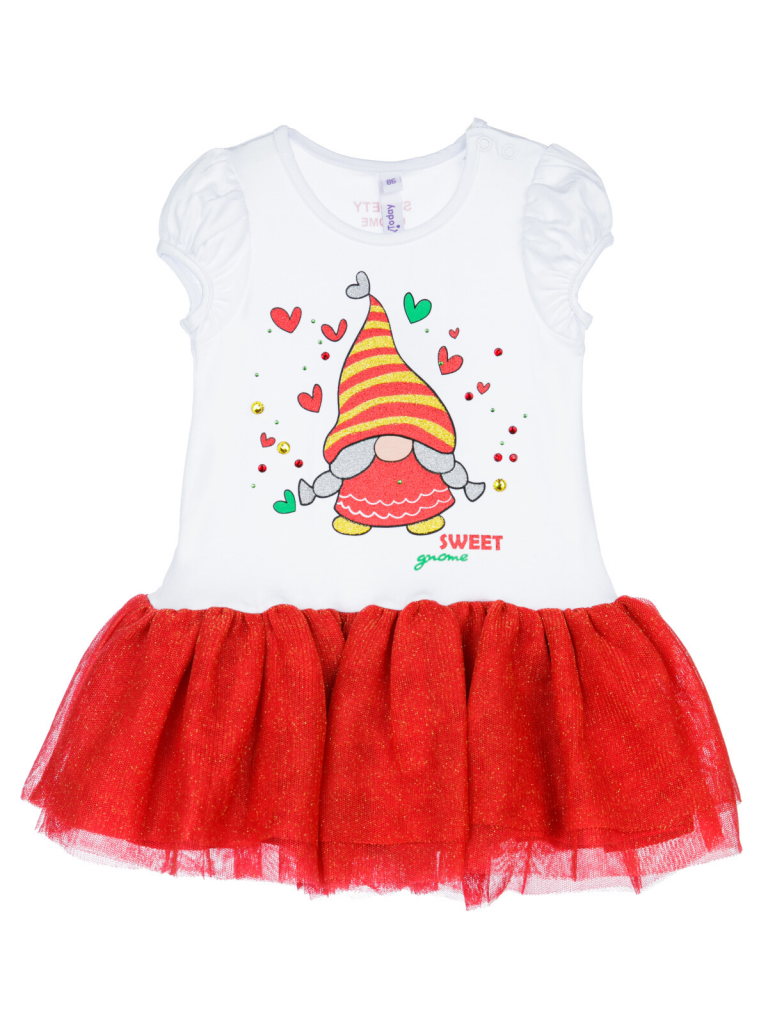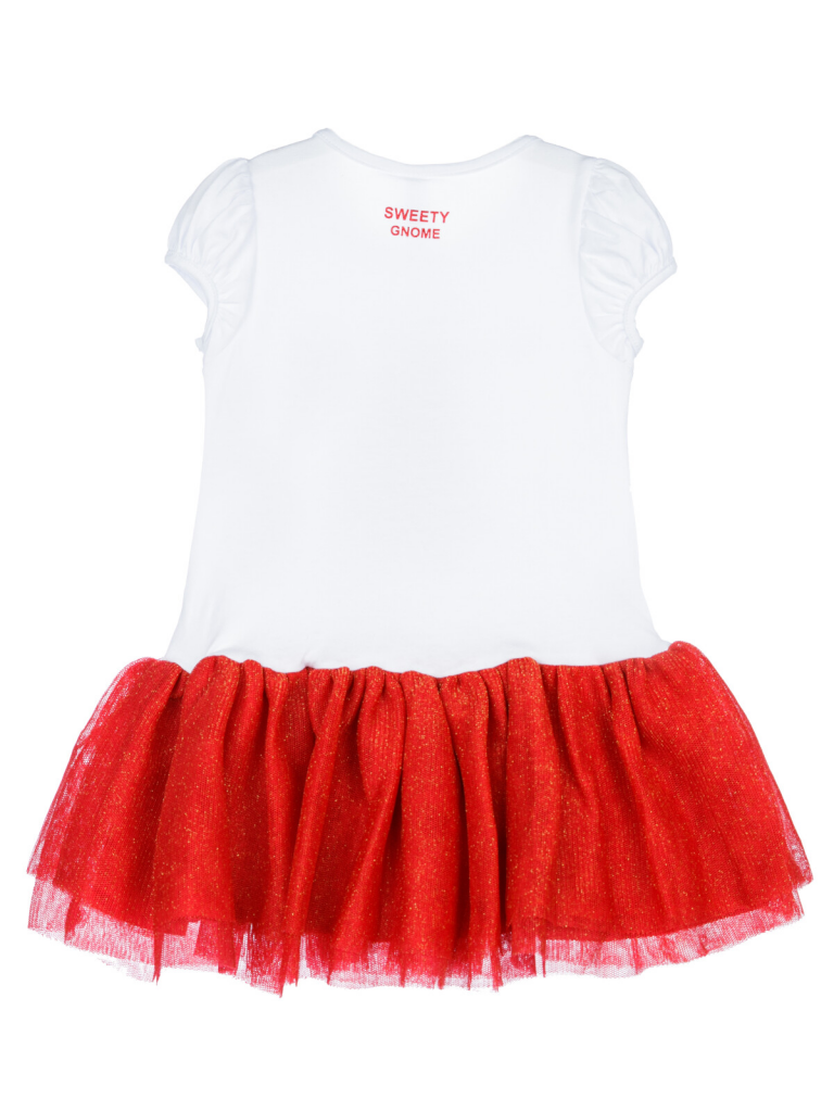 Платье трикотажное с юбкой из мягкой сетки. Верх платья из трикотажа с высоким содержанием хлопка 95%. Благодаря наличию 5% эластана в составе ткани изделие держит форму.