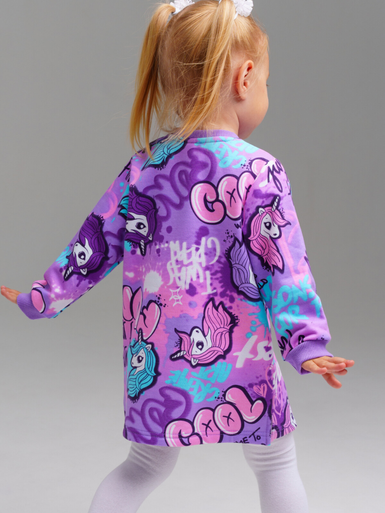Платье детское из футера с начесом для девочки. Нарядное платье с высоким содержанием хлопка. Модель из капсульной коллекции PRETTY-UNICORN. Соберите полный образ в едином стиле!