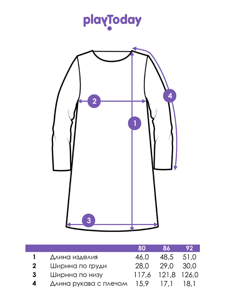 | Размер: рост, см | 74 | 80 | 86 | 92 | 98 | 104 | 110 | 116 | 122 | 128 | 134 | 140 | 146 | 152 | 158 | 164 | 170 |