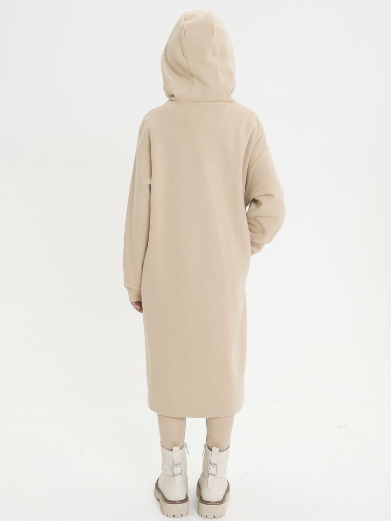 Платье с капюшоном для девочки оверсайз. Платье толстовка на девочку с длинным рукавом, свободного прямого кроя, удлиненное ниже колена, с разрезиками внизу, капюшон на толстой завязке. Спереди необычны выпуклый принт надпись. Базовый вариант детского гардероба из футера для осени и зимы. Для современных девочек комфортная и универсальная свободная детская одежда вышла на первый план. Просторное теплое детское спортивное платье для подростка не сковывает движений, в нем удобно бегать, прыгать при этом выглядеть по-девичьи. Утепленное платье создано для активной жизни ребенка. Зимнее платье идеальный вариант для детей для повседневной носки на каждый день, подойдет на прохладную погоду, в нем можно много гулять, а от ветра защитит капюшон.