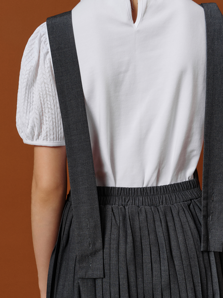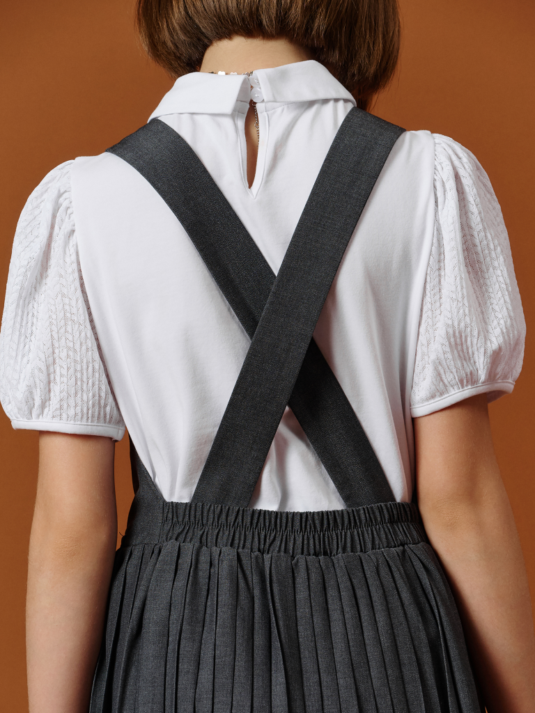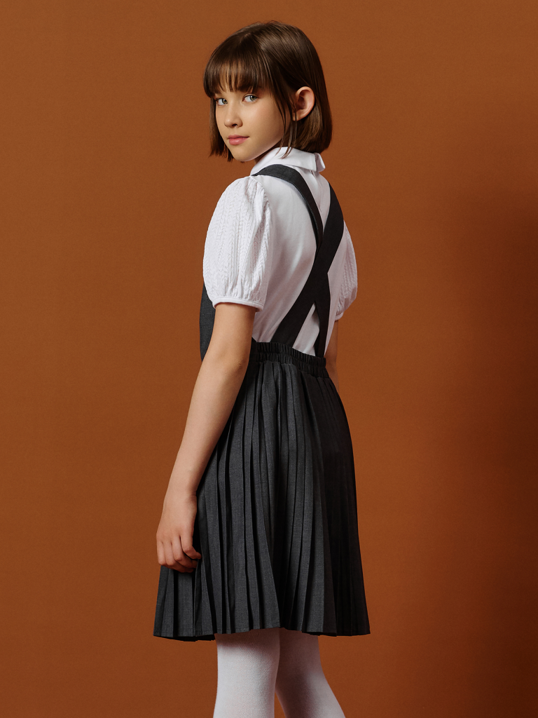 Швейный сарафан с юбкой в мелкую плиссировку — удобный и стильный выбор для школы и не только. Мелкие складки шириной 5 мм создают аккуратный, ровный рисунок, который не мнётся и сохраняет форму даже после долгого учебного дня. Верх сарафана — жилет с застёжкой на пуговицы спереди. Спинка с перекрещивающимися лямками регулируется по длине, чтобы сарафан идеально сидел на ребёнке любого роста. Лямки крепятся к юбке на потайные пуговицы, что обеспечивает надёжную фиксацию и комфорт при движении. Декоративные клапаны на линии талии придают школьному образу стиль и аккуратность. Юбка сзади на внутренней резинке — она помогает сарафану удобно сидеть на талии, не сползать и не мешать во время уроков и активных перемен. Сшит из смесовой ткани — практичный материал, который не мнётся, дышит и легко стирается. Сарафан прослужит долго, сохраняя аккуратный вид как в школе, так и в повседневной жизни. Выбирайте нужный размер по таблице размеров на фото. Цвет товара на экране вашего устройства может отличаться от цвета изделия вживую.